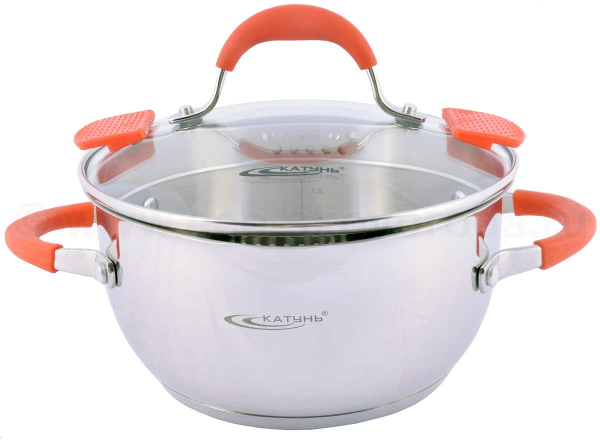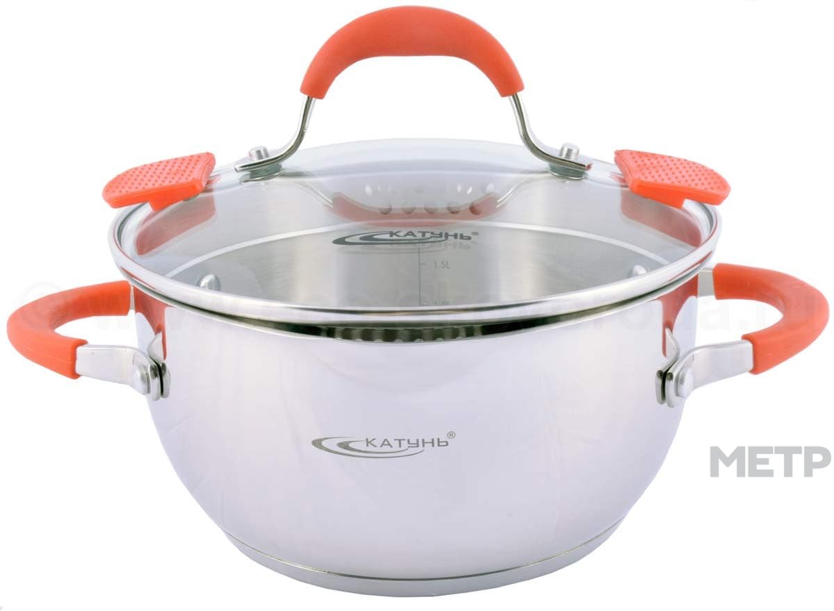 Kастрюля Катунь Аврора 2,2 л нержавеющая сталь отлично справляется с приготовлением блюд любой сложности. Хороший объём, толщина стенки 0,6 мм. Изделие достаточно прочное. Подходит для готовки на индукционной плите. К кастрюле прилагается крышка, которая изготовлена из прочного стекла.