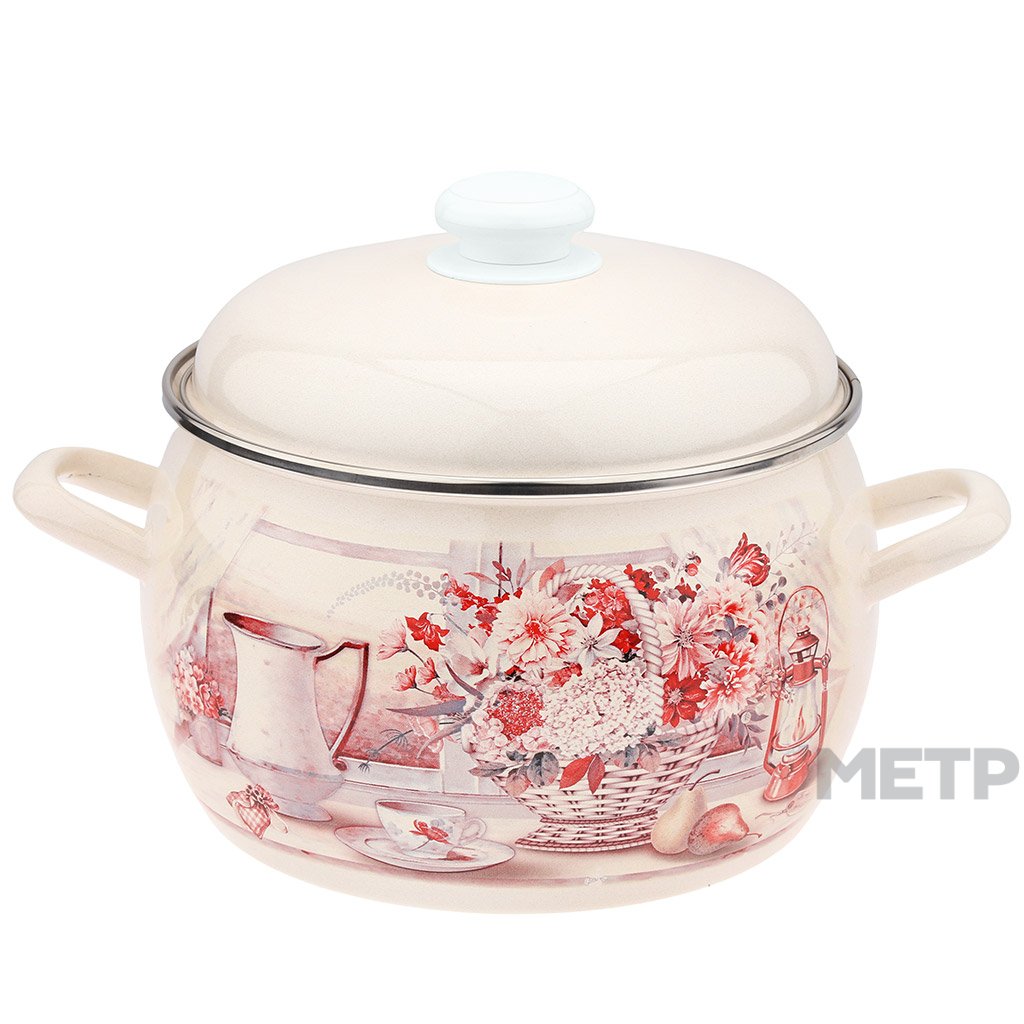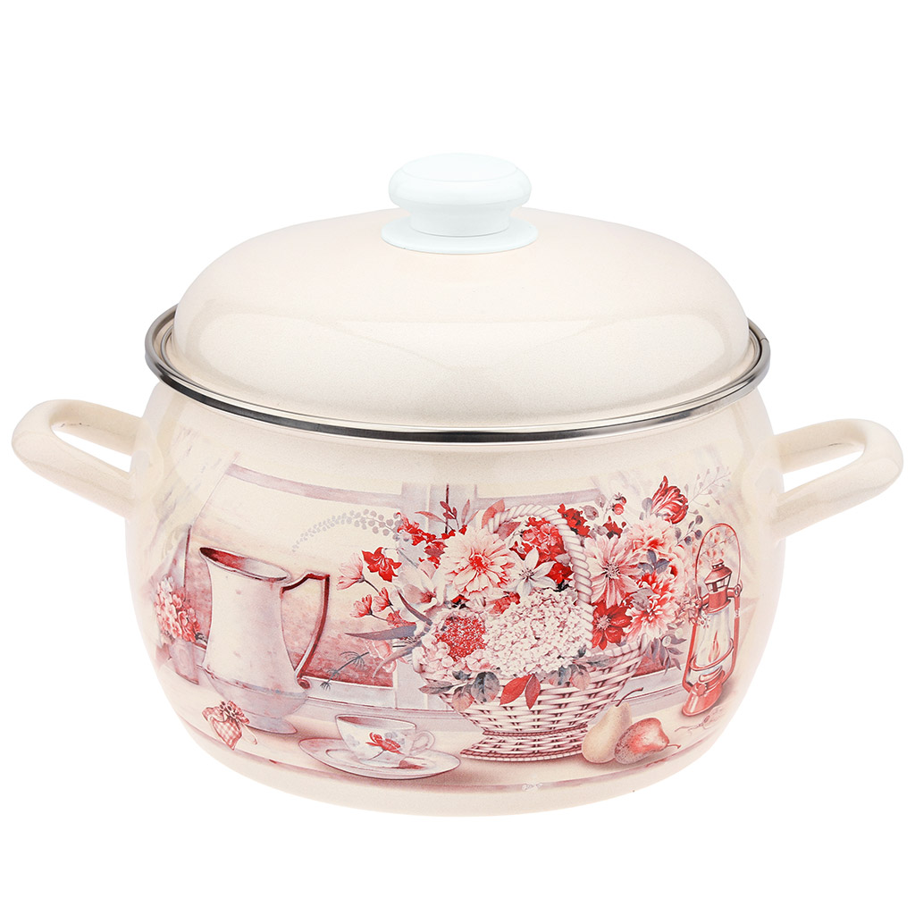 Кастрюля 3,5 л – посуда с цельнометаллическими ручками и крышкой в комплекте. Сделана из безопасной эмалированной стали, украшена оригинальным и ярким рисунком. Емкость подходит для индукционных плит. Металл не подвержен коррозии, не вступает в реакции с пищевыми продуктами.