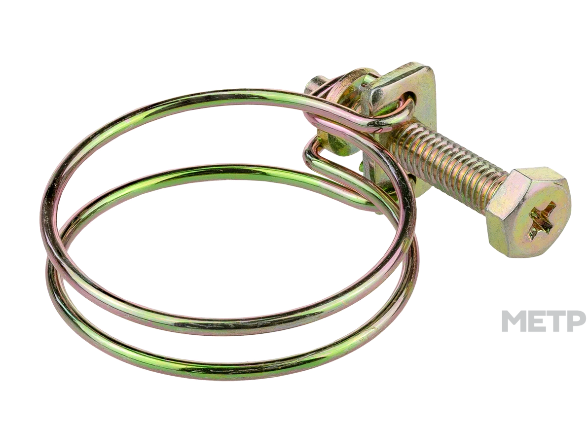 Проволочный спиральный хомут имеет пружинный механизм, состоящий из двух частей. Одна имеет оцинкованную проволоку из стали, а вторая часть оснащена болтом, который затягивается. Сама затяжка выполняется при закручивании затяжного болта. Именно по этому принципу спираль сдвигается к стороне сужения. Данным хомутом отлично стягивать резиновые шланги и также его можно соединять с металлическими трубками.