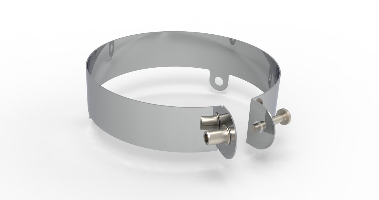 Хомут под растяжки 220мм 1мм нержавеющая сталь - элемент крепления дымоходных труб, которые возвышаются над уровнем крыши выше, чем на 2 метра. Растяжки устанавливаются с помощью стальной проволоки или тросов. Преимущество: Цельнокроеные крепления, отсутствует сварка! Хомут закрепляется на дымоходной трубе методом обжима при помощи соединения винта и гайки-заклепки. Наличие гайки-заклепки значительно облегчает монтаж хомута.