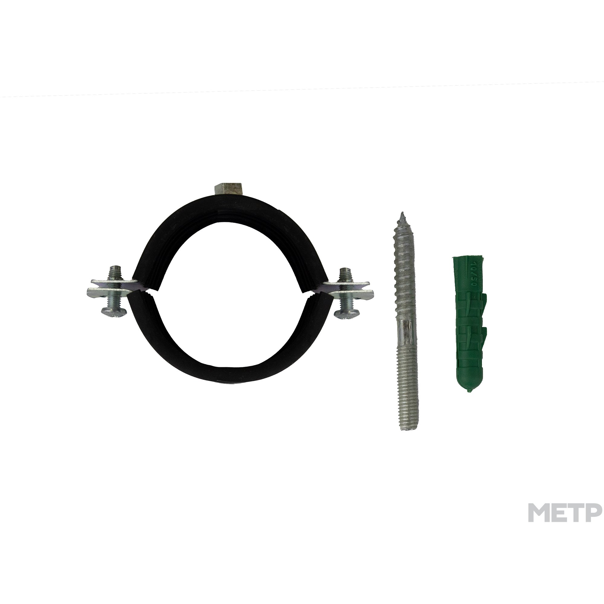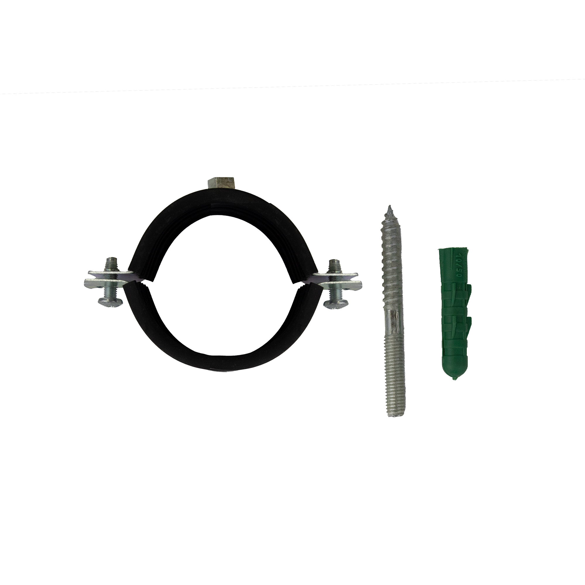 Металлический хомут с резиновым профилем, с гайкой используется для крепления труб к стенам (верт./горизонт.), к потолку, полу. Снижает уровень шума до 15дб в соответствии с DIN 4109; уменьшает вибрации;,частично компенсирует тепловые расширения.