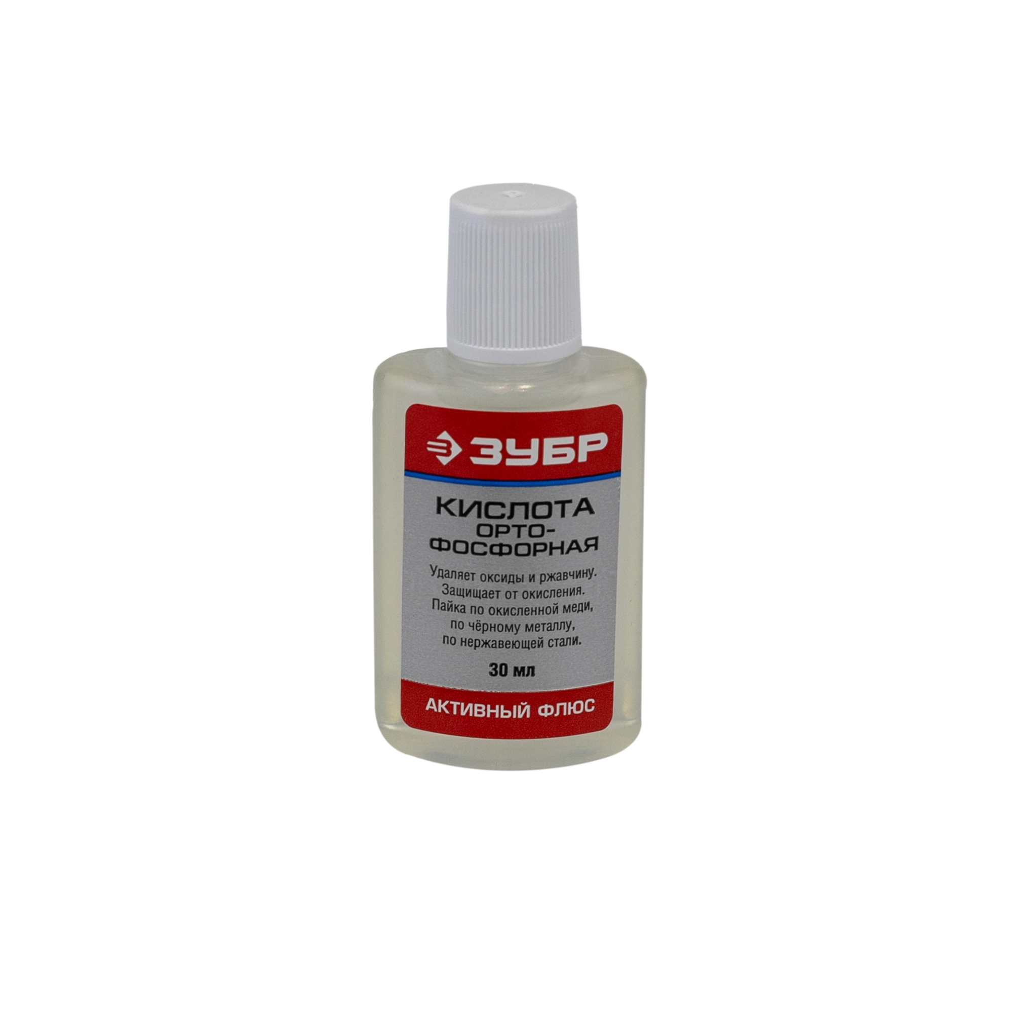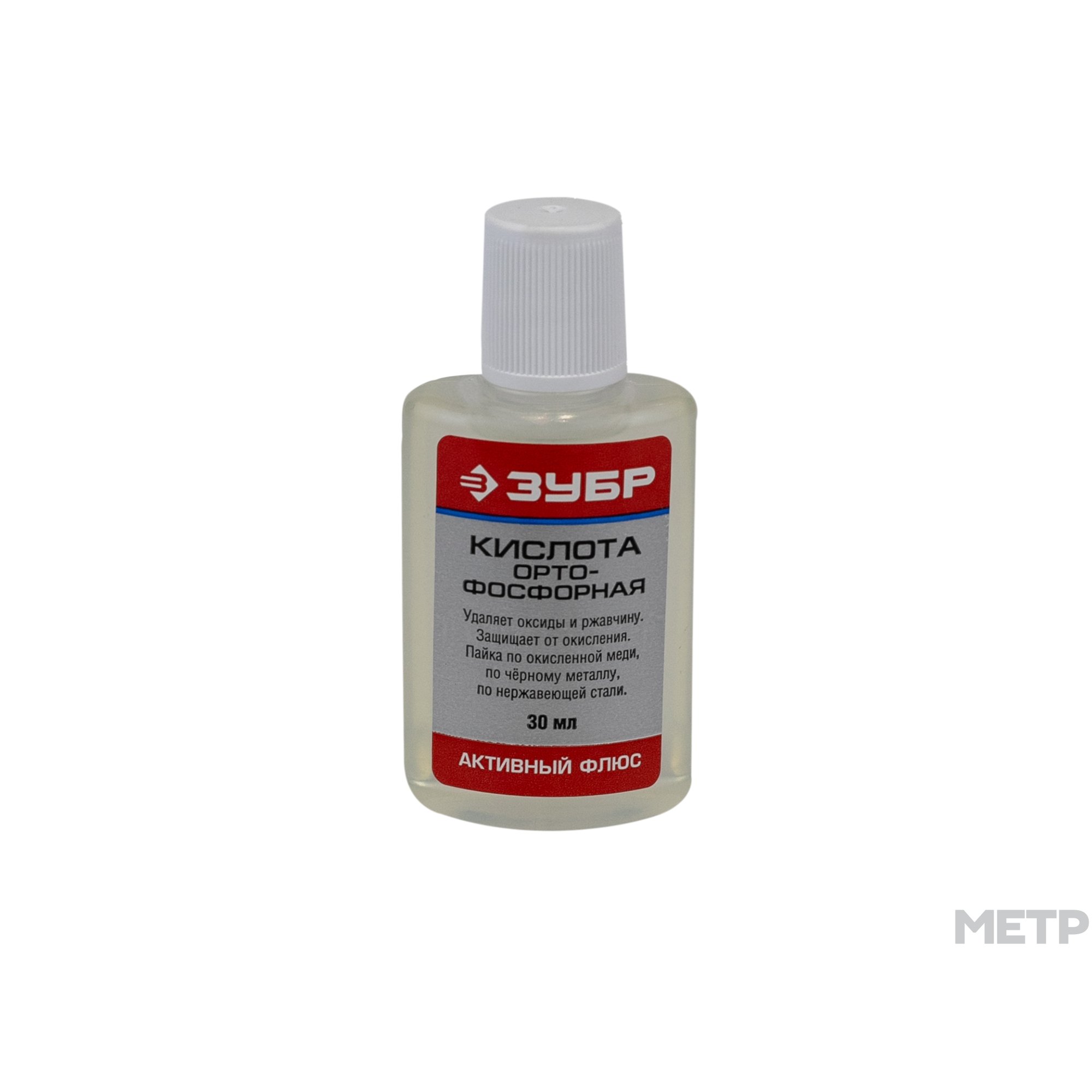 Кислота ортофосфорная ЗУБР применяется перед монтажом электронных компонентов. Предназначена для очистки поверхностей из нержавеющих сталей, черных металлов, окисленной меди. Пайка углеродистых и низколегированных сталей, меди, никеля и их сплавов.