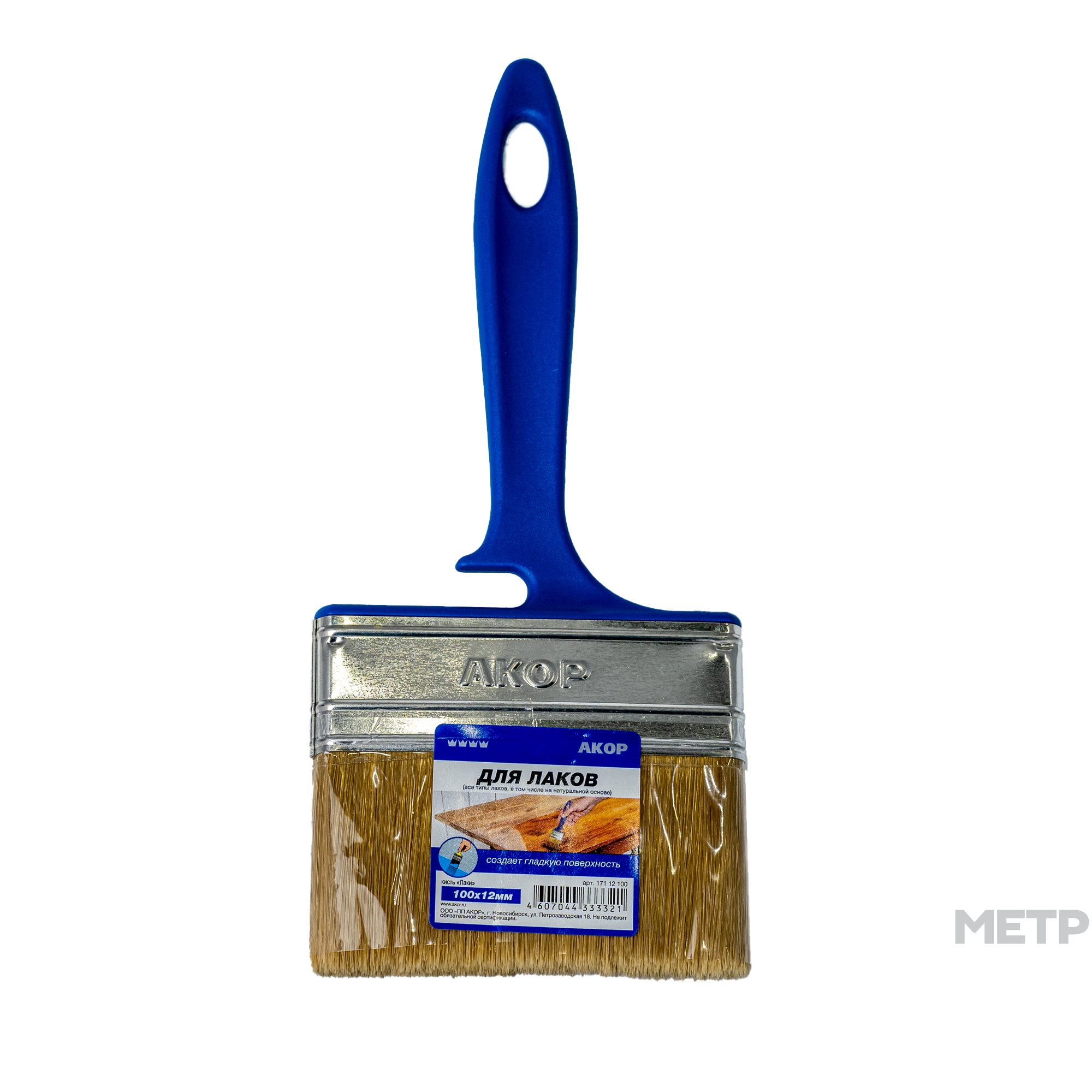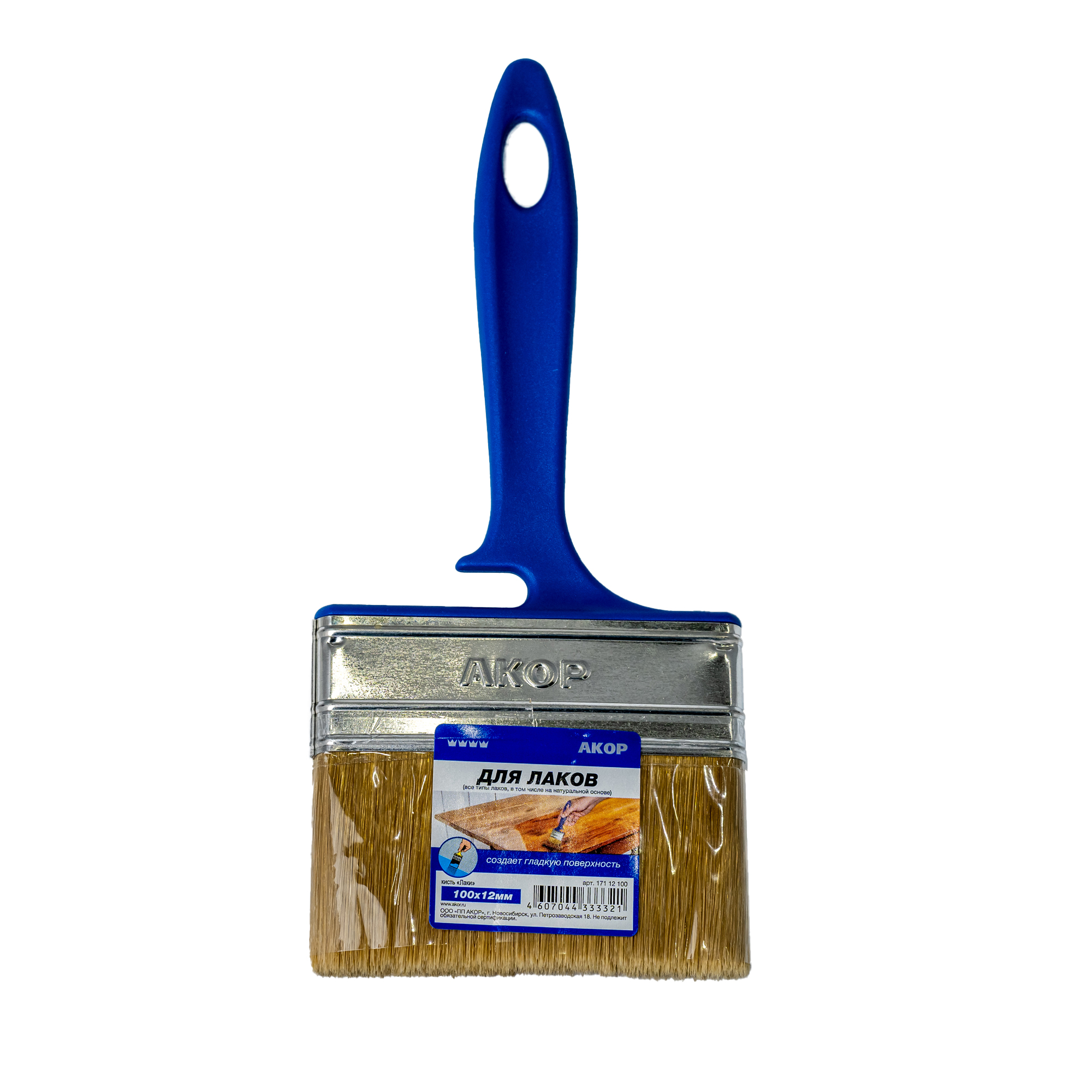 Кисть флейцевая Акор 100 мм для лаков. Специализированное изделие, предназначенное для выполнения качественных, профессиональных работ с лаками. Данная кисть оснащена устойчивой к воздействиям агрессивных сред пластиковой рукояткой, имеет традиционную натуральную щетину, долговечна.