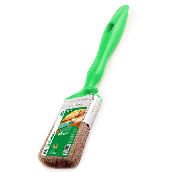 Кисть флейцевая Акор 50 мм для работ по дереву Мастер поможет вам прокрасить труднодоступные места. Длинная ручка, изготовленная из прочного пластика, позволяет аккуратно работать с поверхностями. Смешанная щетина оснащена высокой степенью укрывистости и краскоотдачи., поэтому данная кисть равномерно и тщательно прокрашивает нужные объекты.