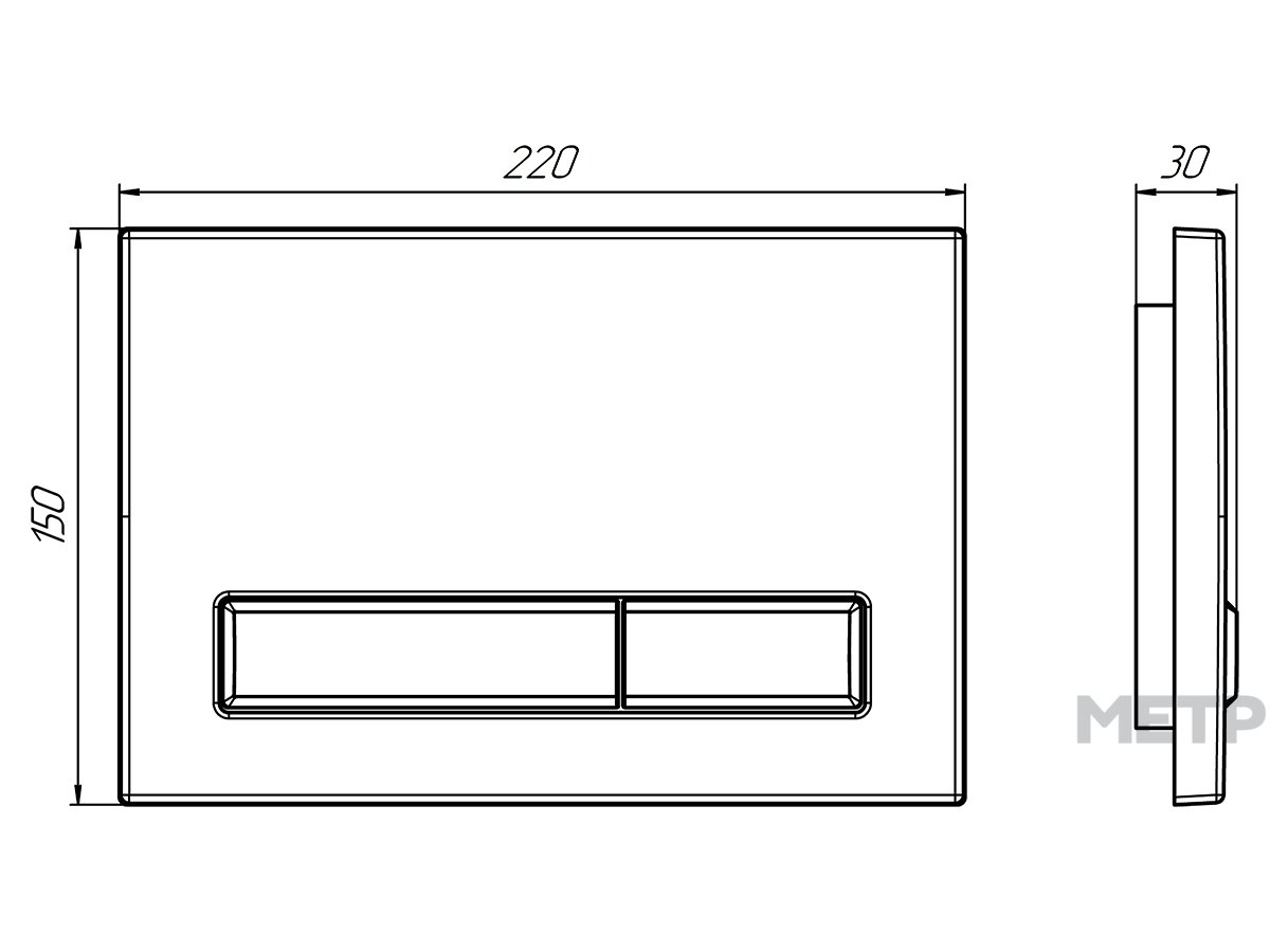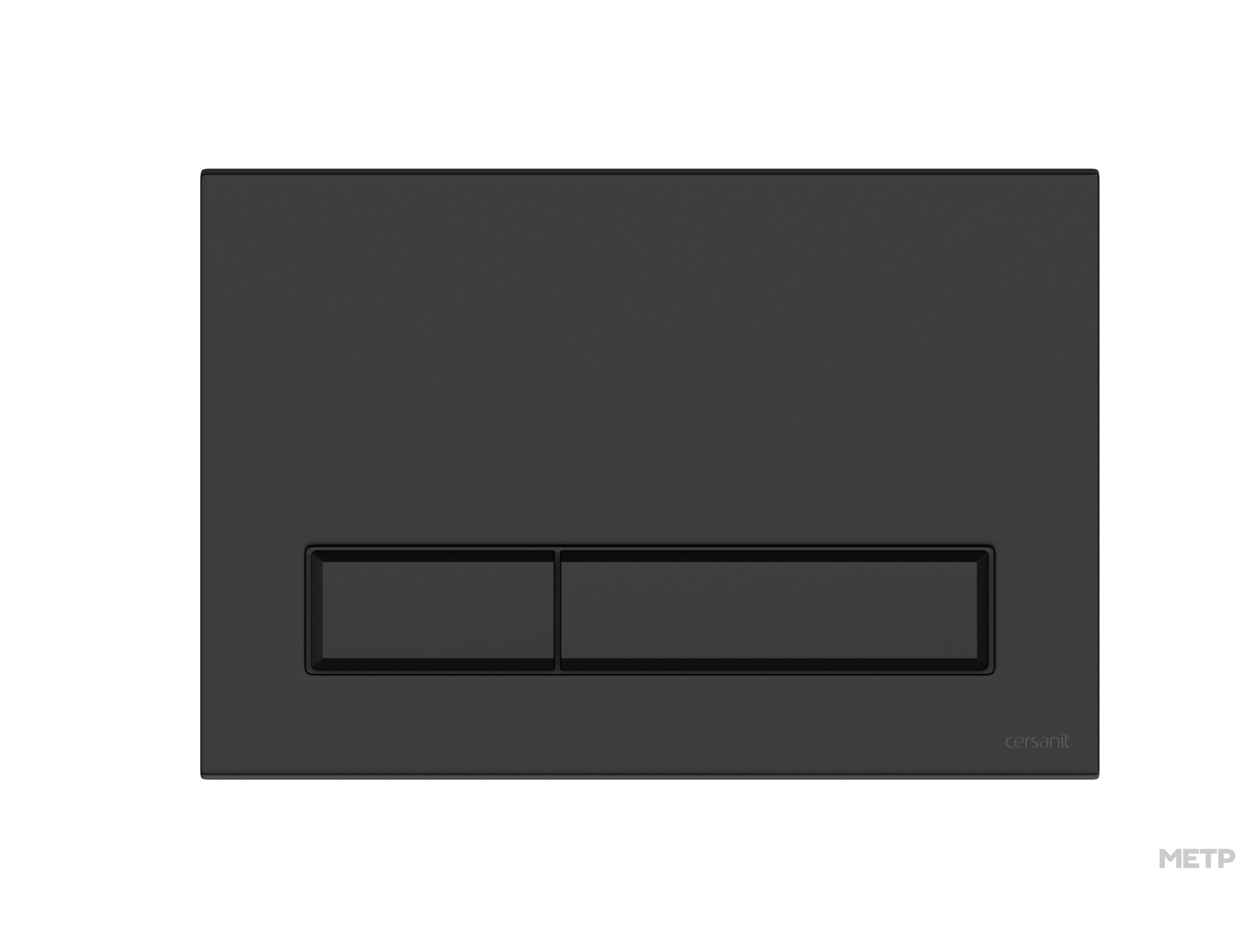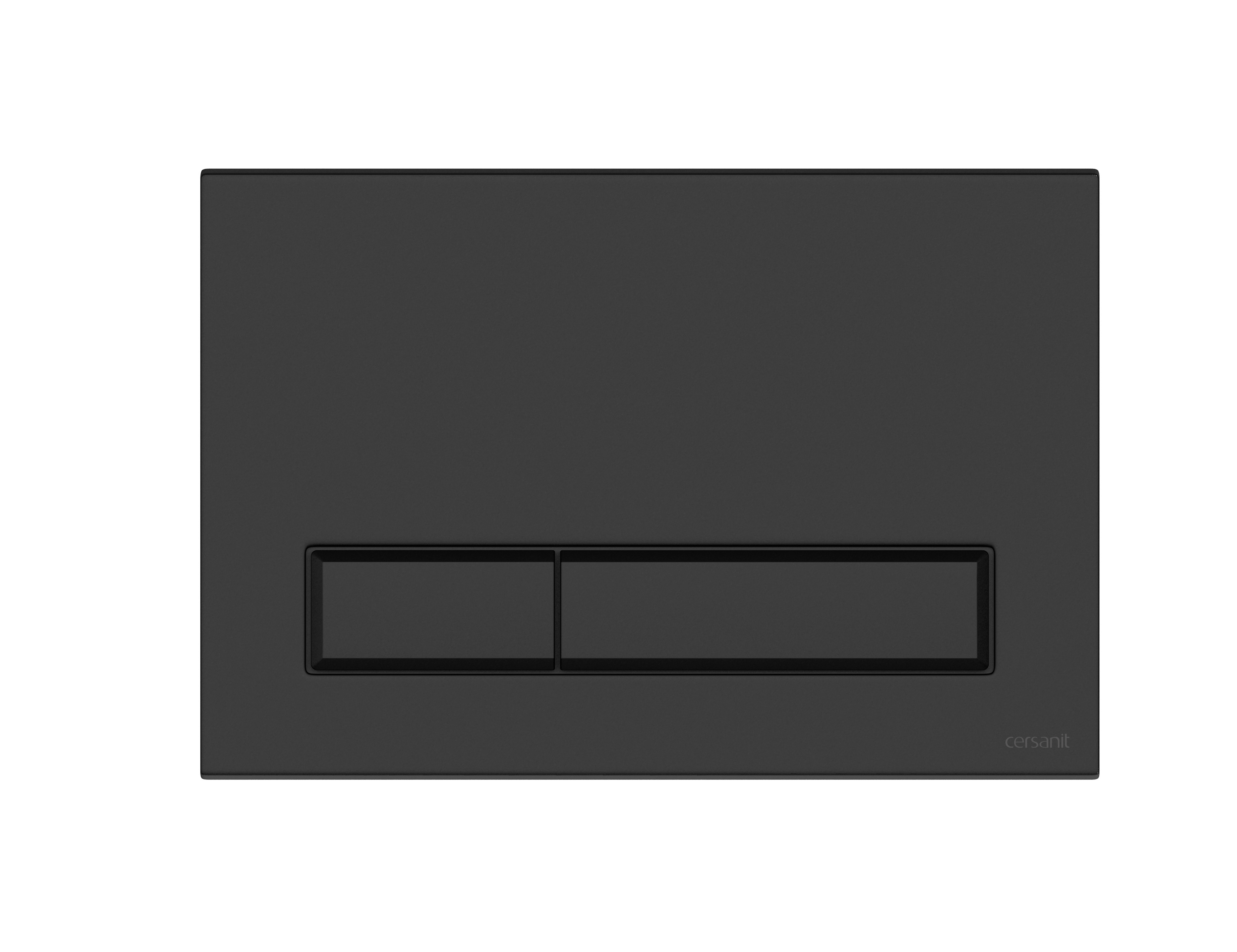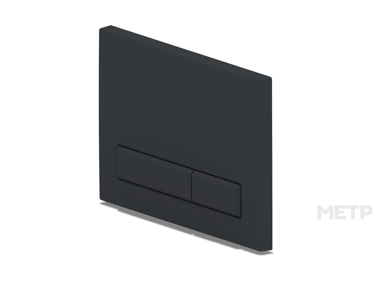 Клавиша для инсталляции АНИ пласт, матового черного цвета, используется для системы инсталляции. Обеспечивает надежное управление сливом. Клавиша выполнена в виде прямоугольника с двумя горизонтально расположенными кнопками-прямоугольниками.