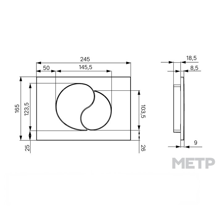 Клавиша для инсталляции IDDIS Unifix 021 отличается оригинальной овальной формой — два сегмента образуют фигуру, похожую на известный символ инь-ян. Изделие защищено глянцевым хромированным покрытием от ржавчины и механических повреждений. Две кнопки — это 2 разных объема слива. В комплектацию входят установочная рамка и крепежные элементы.