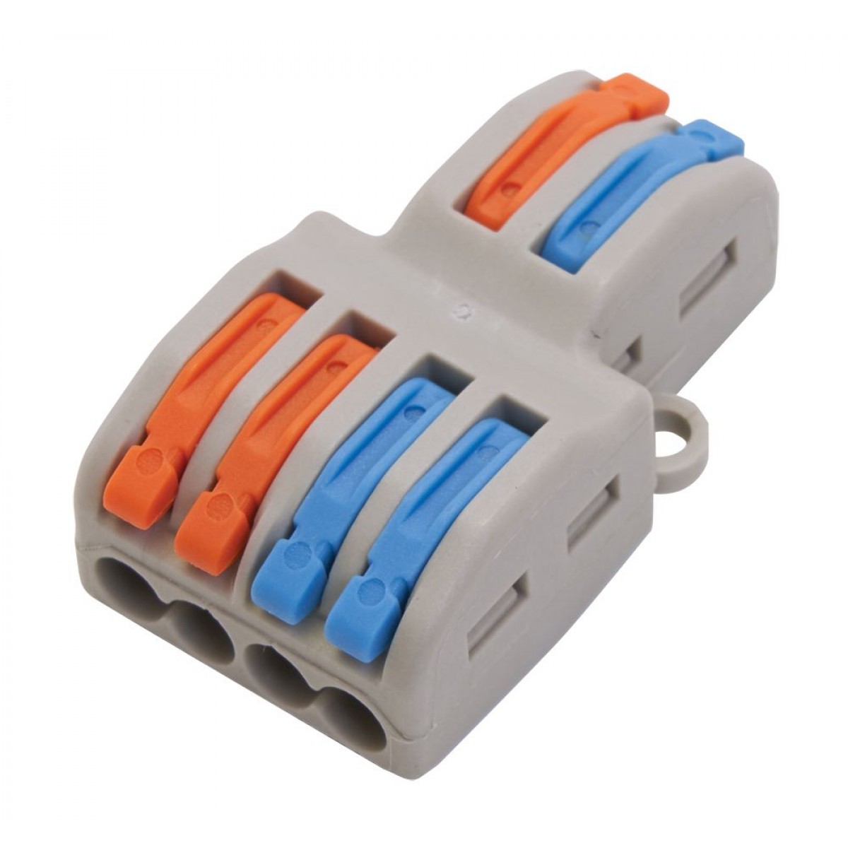 Клемма быстрозажимная с рычажком STEKKER LD222-424 4 кв. мм 2 шт. — универсальная проходная клемма для подключения однопроволочных и многопроволочных медных проводников. Имеет 2 полюса, которые в свою очередь имеют по 2 выхода. Корпус имеет углубления для рычажков, что предотвращает случайное открытие и выпадение провода. Для монтажа не требуется дополнительных инструментов.