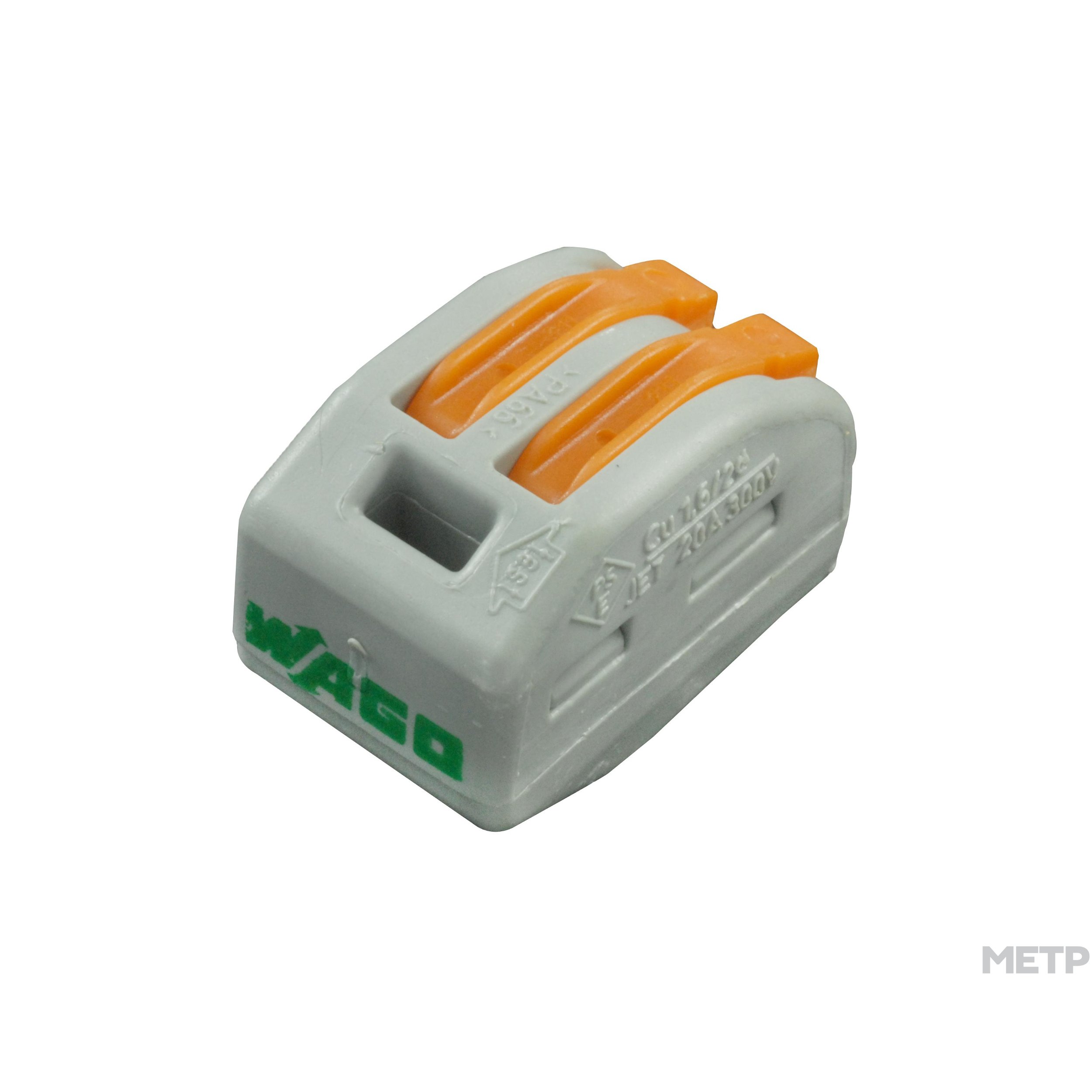 Клемма быстрозажимная с рычажком WAGO 222-412 4 кв. мм 2-проводная — универсальная изолированная клемма для подключения любых типов медных проводников: однопроволочных и многопроволочных. Зажим проводов в клемме осуществляется при помощи оранжевых рычагов. Наличие специального паза в корпусе для размещения рычага в закрытом положении надежно предотвращает случайное отсоединение проводника. Специальное отверстие дает возможность измерения электрических параметров цепи без разбора и нарушения изоляции соединения. Для монтажа не требуется дополнительных инструментов. Используя быстрозажимные клеммы с рычажком WAGO, вы обеспечиваете безопасность и порядок в распределительной коробке.