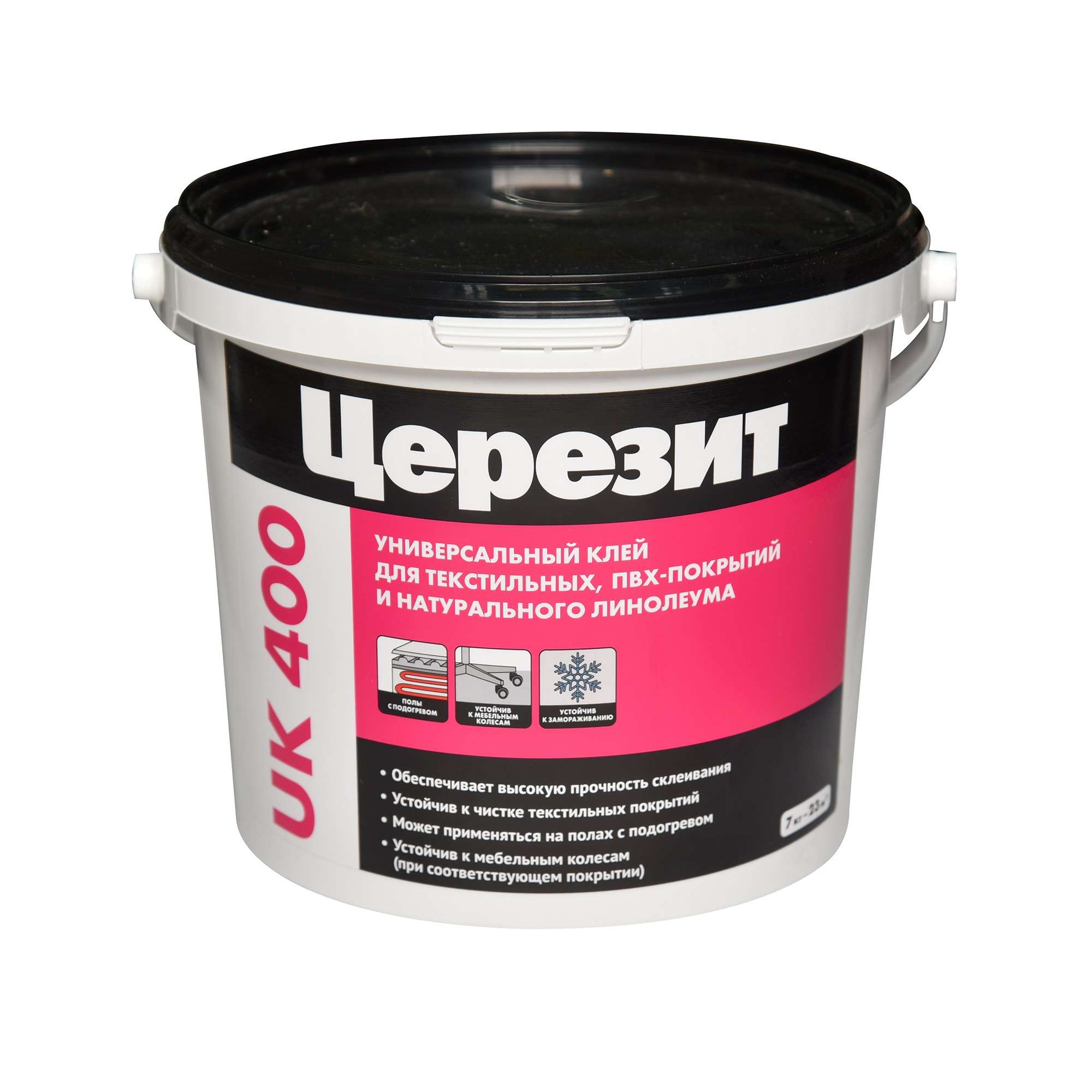 Клей для напольных покрытий Ceresit 7 кг - универсальный водно-дисперсионный клей для текстильных, ПВХ покрытий и натурального линолеума. Предназначен для приклеивания различного вида текстильных и эластичных напольных покрытий в рулонах и плитках: тафтинговых ковролинов с текстильной, войлочной, вспененной латексной или ПВХ подосновой, иглопробивных и тканых ковролинов,