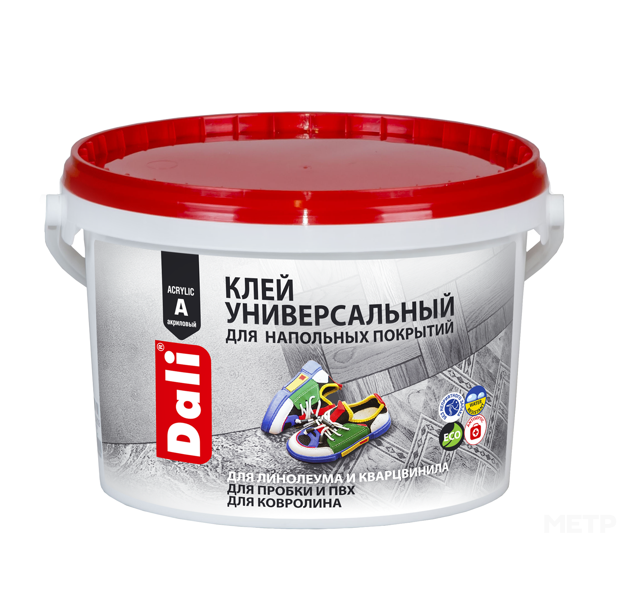 Клей Dali Рогнеда для напольных покрытий светло-коричневый 3,5 кг, предназначен для приклеивания рулонных и плиточных напольных покрытий всех типов: бытовой и коммерческий линолеум на разных подосновах, ковровые покрытия, ПВХ-плитка, рулонные и листовые пробковые покрытия. Используется для приклеивания напольных покрытий на любые влагопоглощающие основания (выдержанная цементная стяжка, штукатурка, гипсоволокнистые и гипсокартонные листы, ДСП, фанера, древесина и т.п.) внутри помещений.