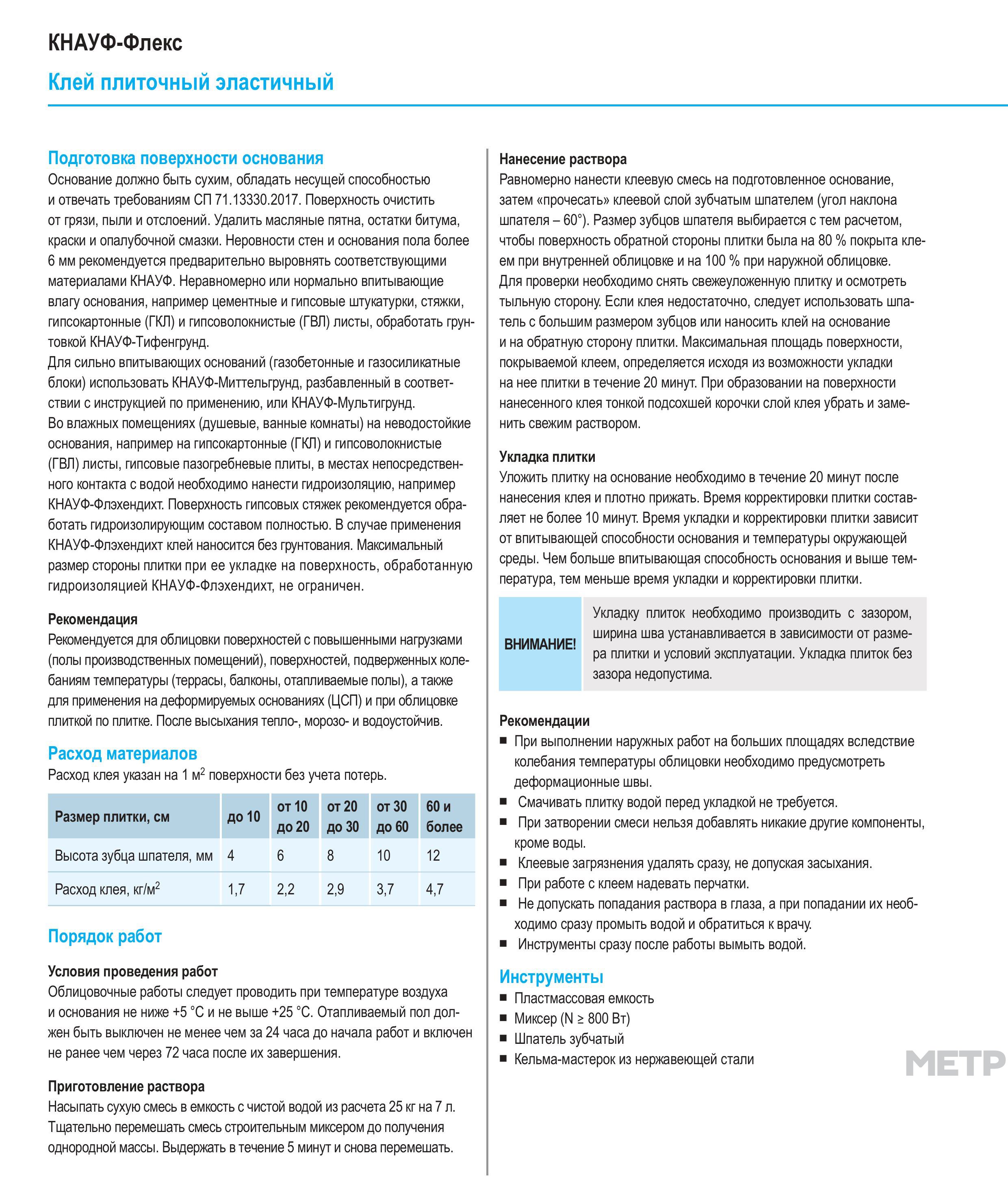Клей для плитки и керамогранита Флекс Knauf 25 кг, предназначен для облицовки внутри и снаружи зданий: стен (включая цоколь) и пола керамической плиткой, керамогранитом, природным и искусственным камнем без ограничений по формату и весу. Эластичен и способен выдерживать высокие динамические нагрузки. Имеет высокая прочность сцепления и совместимость с различными основаниями, в том числе не впитывающими воду.