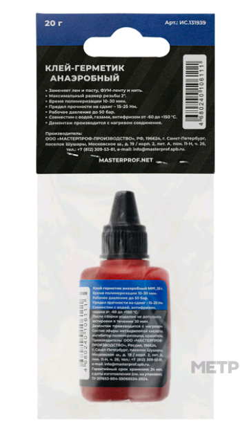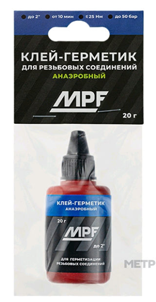 Анаэробный разборный клей -герметик для сантехники со средней степенью фиксации соединения. Рекомендован для герметизации металлических резьб, фитингов и фланцев. Основными достоинствами этого анаэробного герметика являются быстрота полимеризации, легкость в использовании и простота последующего демонтажа соединения