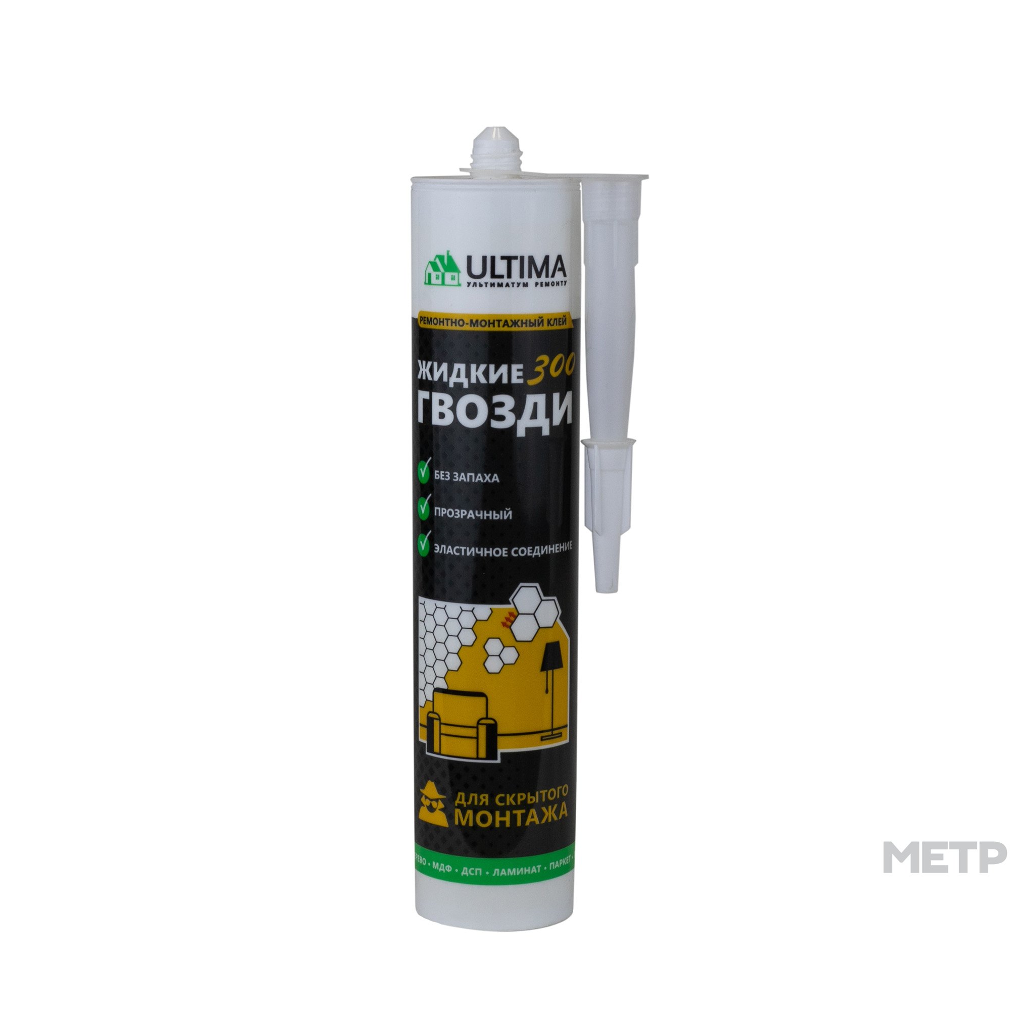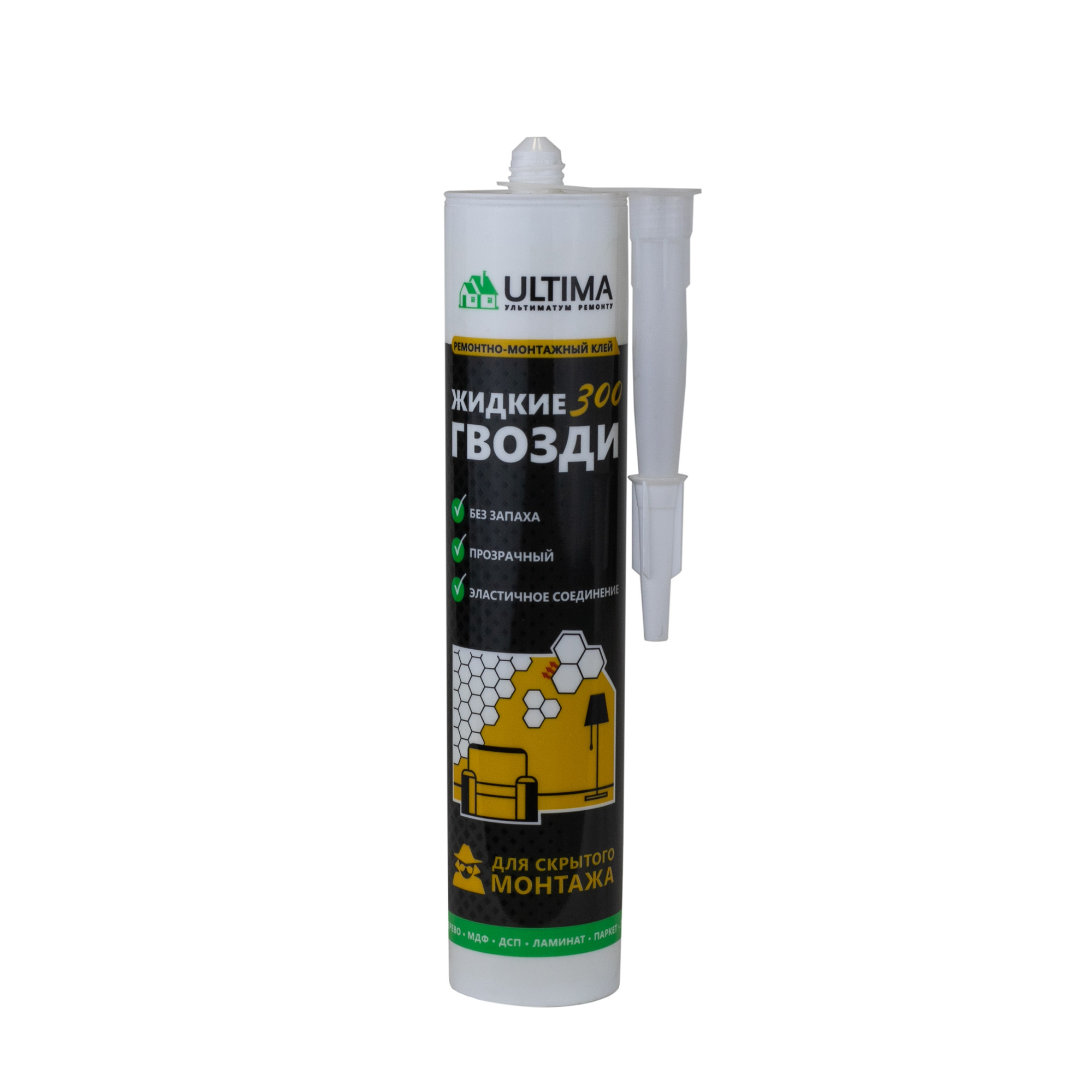 Клей Ultima 300 для внутренних работ бесцветный 300 мл, - прозрачный клей на акриловой основе для проведения внутренних и наружных ремонтно-монтажных работ. Представляет собой молочно-белую вязкую жидкость. После высыхания образует эластичную бесцветную пленку. Подходит для склеивания большинства строительных материалов: стекла, дерева, МДФ, ДСП, ламината, паркета, металла, ПВХ, пенополистирола, гипсокартона, бетона, керамики и т.д. Не токсичен, не горюч. Обладает высокой прочностью и влагостойкостью. Не содержит летучих растворителей. Обладает низким содержанием воды. При затвердевании не дает усадки. Легко наносится.