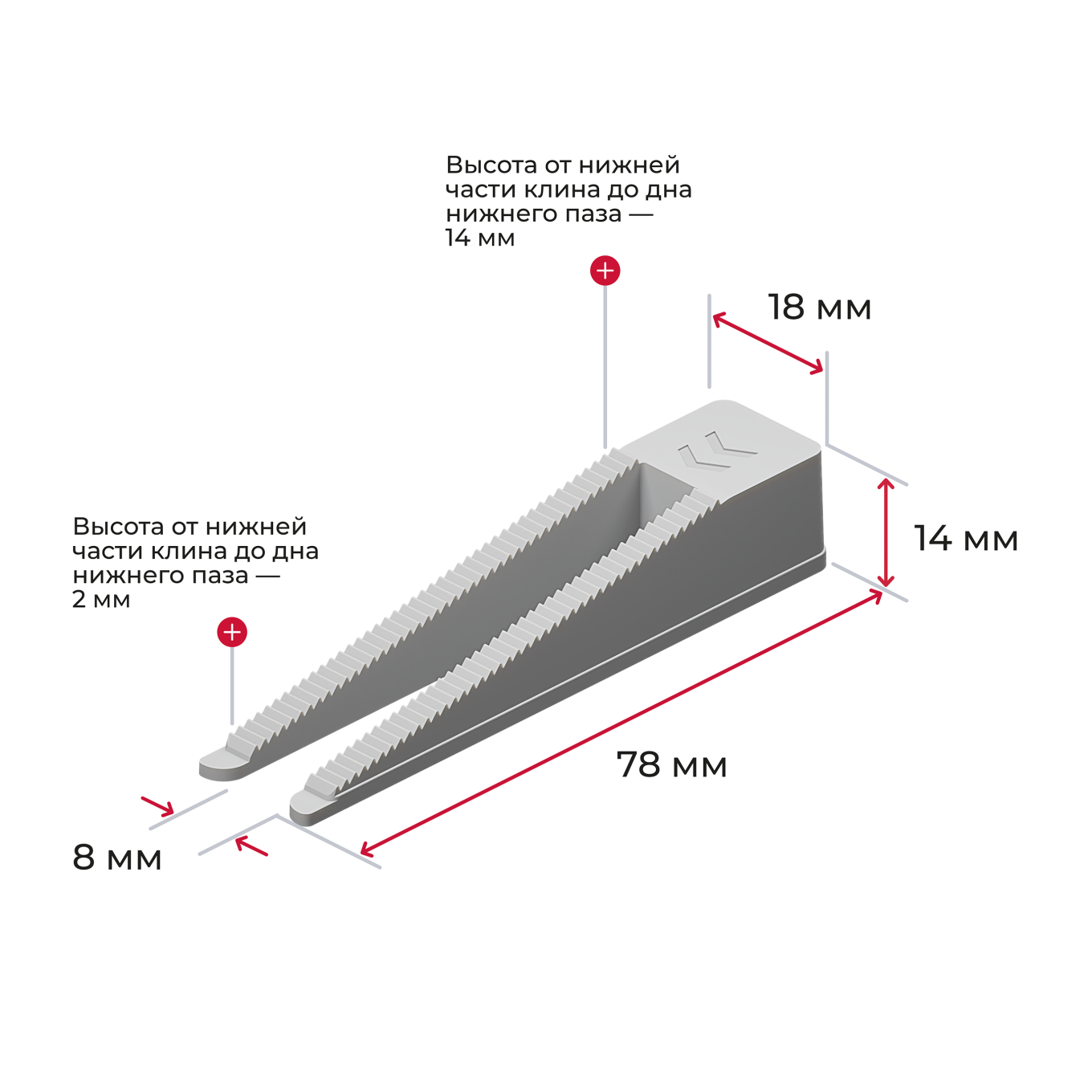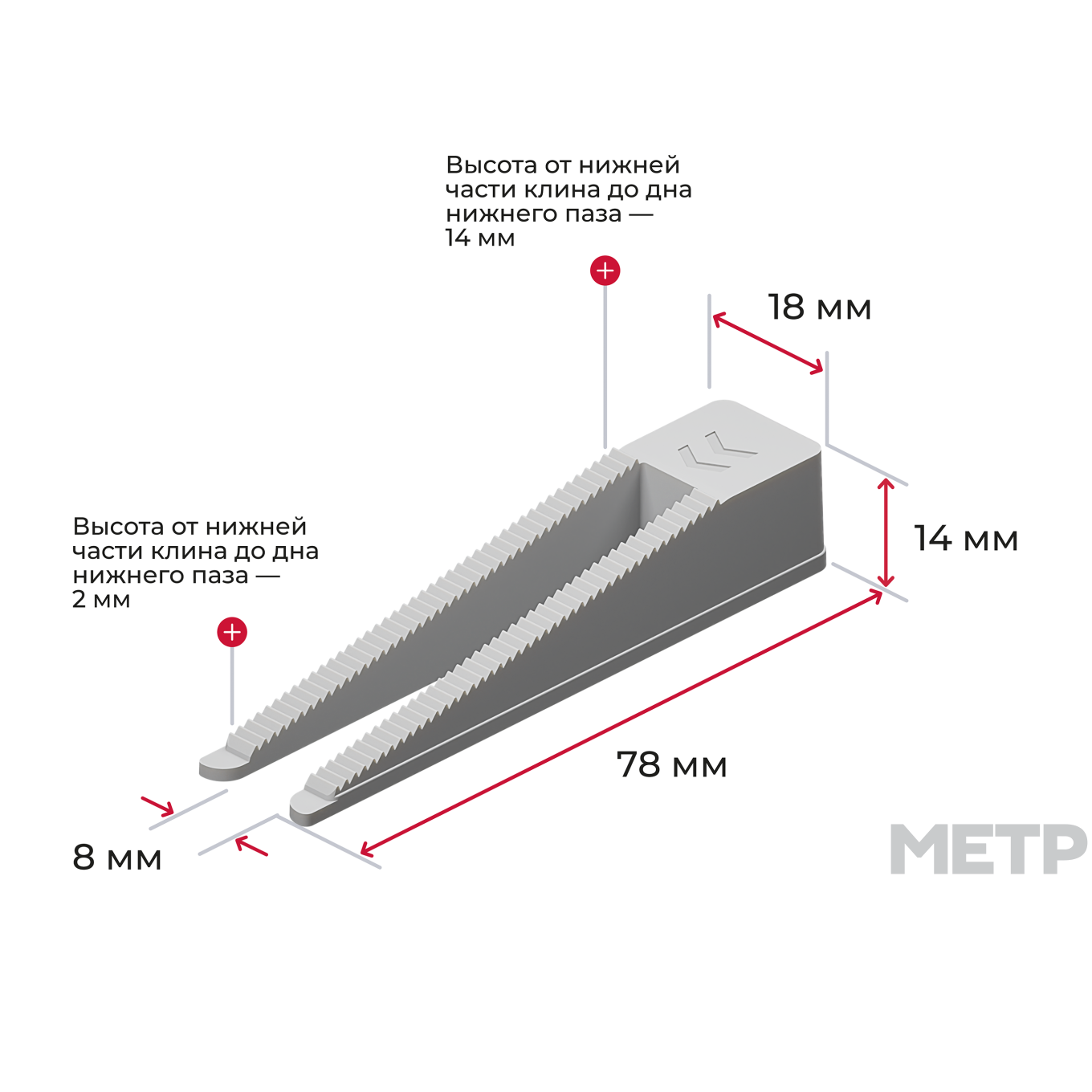 Клинья для зажимов в форме кольца (СВП). Используются многократно, потому что не истираются при монтаже и не ломаются при демонтаже. Плитка не царапается и не пачкается краской благодаря качественному составу клиньев. Для монтажа рекомендуем применять щипцы производства «АКОР».