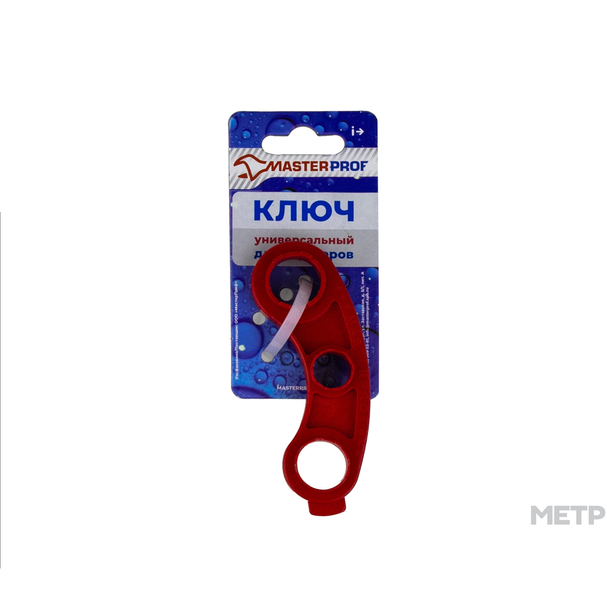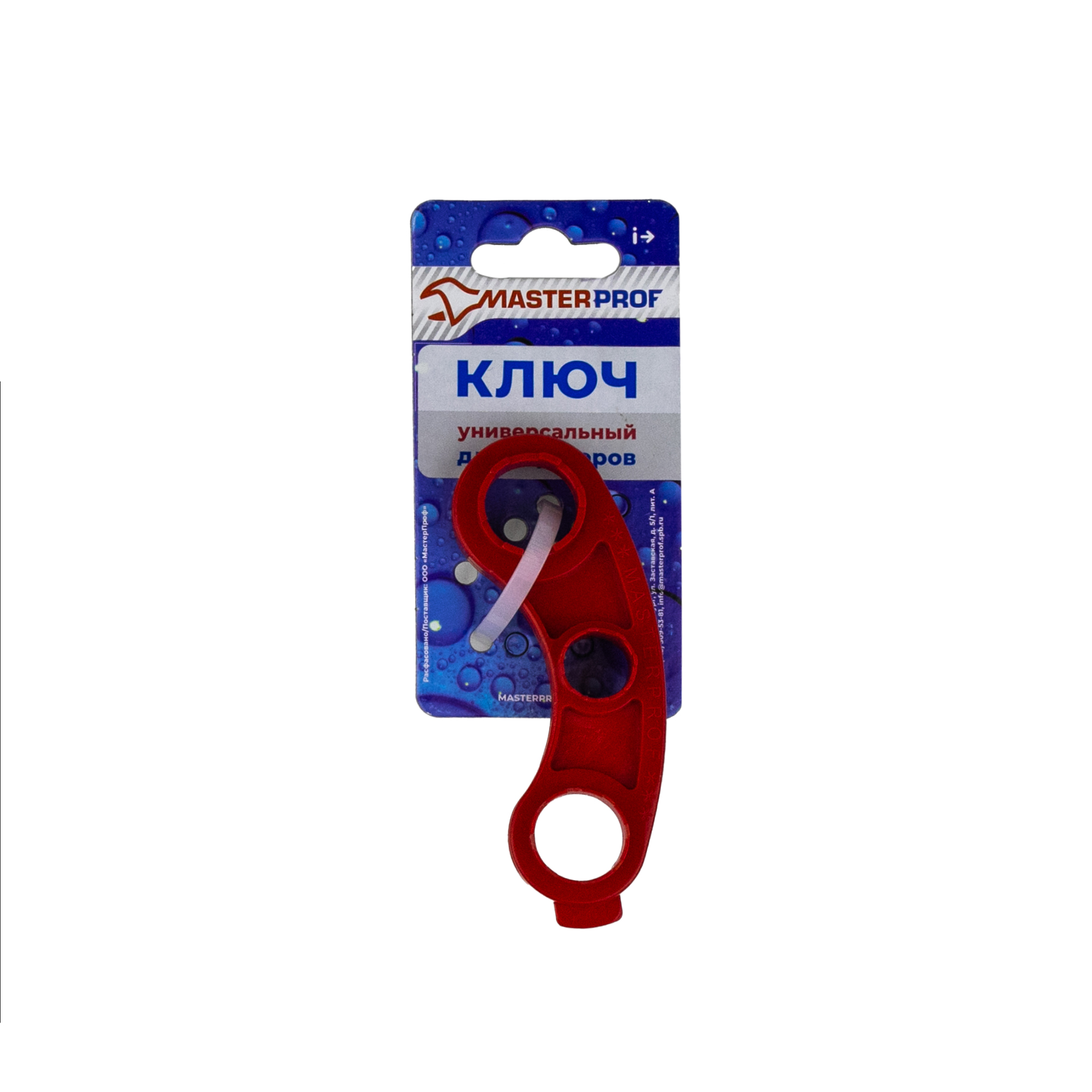 Универсальный ключ для аэраторов предназначен для демонтажа или монтажа аэраторов различного типа с целью их обслуживания или замены. На ключе предусмотрены семь наиболее востребованных разъёмов, соответствующих аэраторам определенного типа: 1) наружный аэратор М24; 2) наружный аэратор М28; 3) встраиваемый аэратор Ø16,5 мм * 8 зубцов; 4) встраиваемый аэратор Ø18,5 мм * 8 зубцов; 5) встраиваемый аэратор Ø21 мм * 8 зубцов; 6) встраиваемый аэратор Ø23,5 мм * 6 зубцов; 7) встраиваемый аэратор типа «snake eye» (с поперечным слотом для монтажа). Ключ выполнен из высококачественного полиамида благодаря чему предотвращается появление царапин на аэраторах при сборке или демонтаже. Специальная конструкция, а также состав материала обеспечивает высокую надёжность и долговечность. Разработан и произведен компанией MASTERPROF в Санкт-Петербурге!