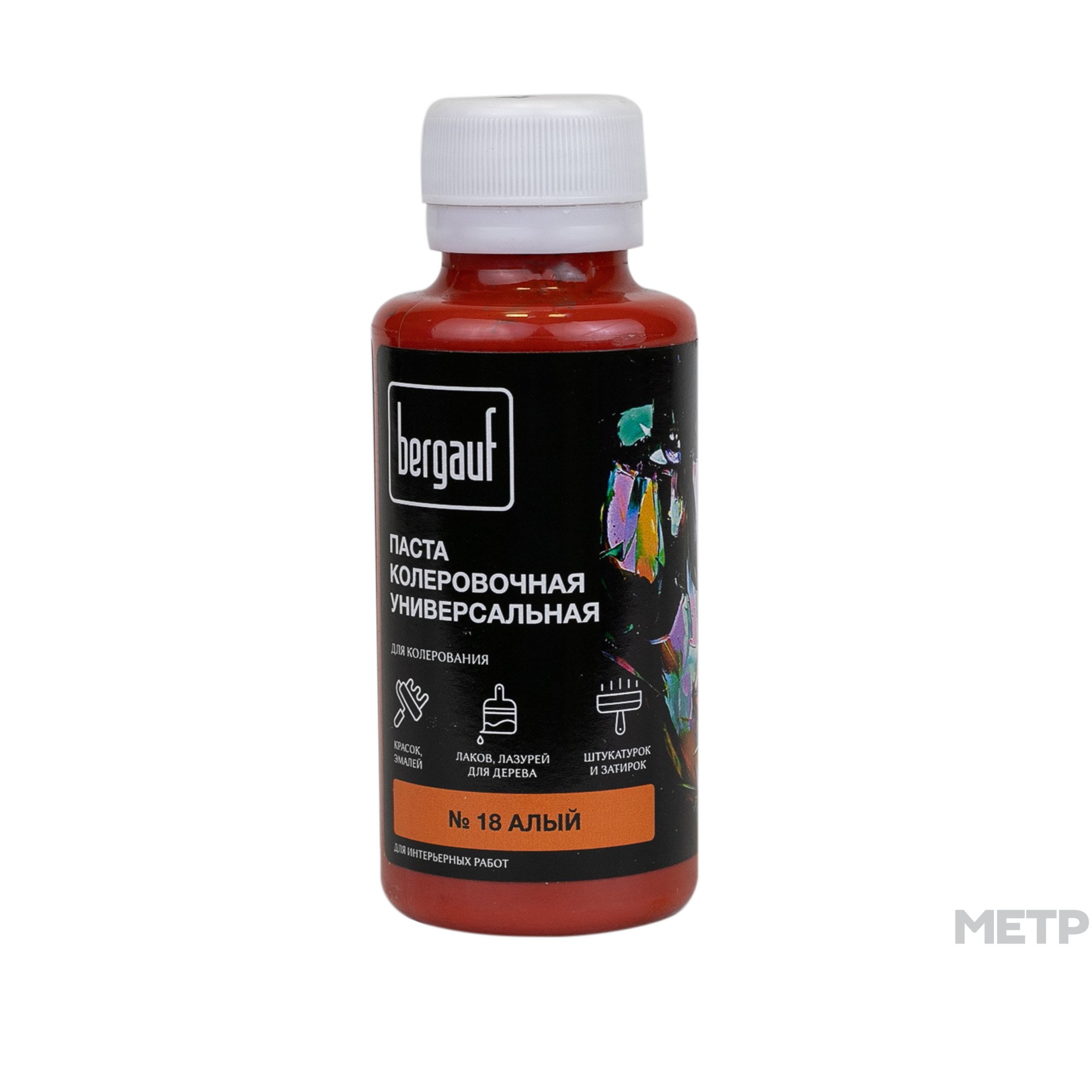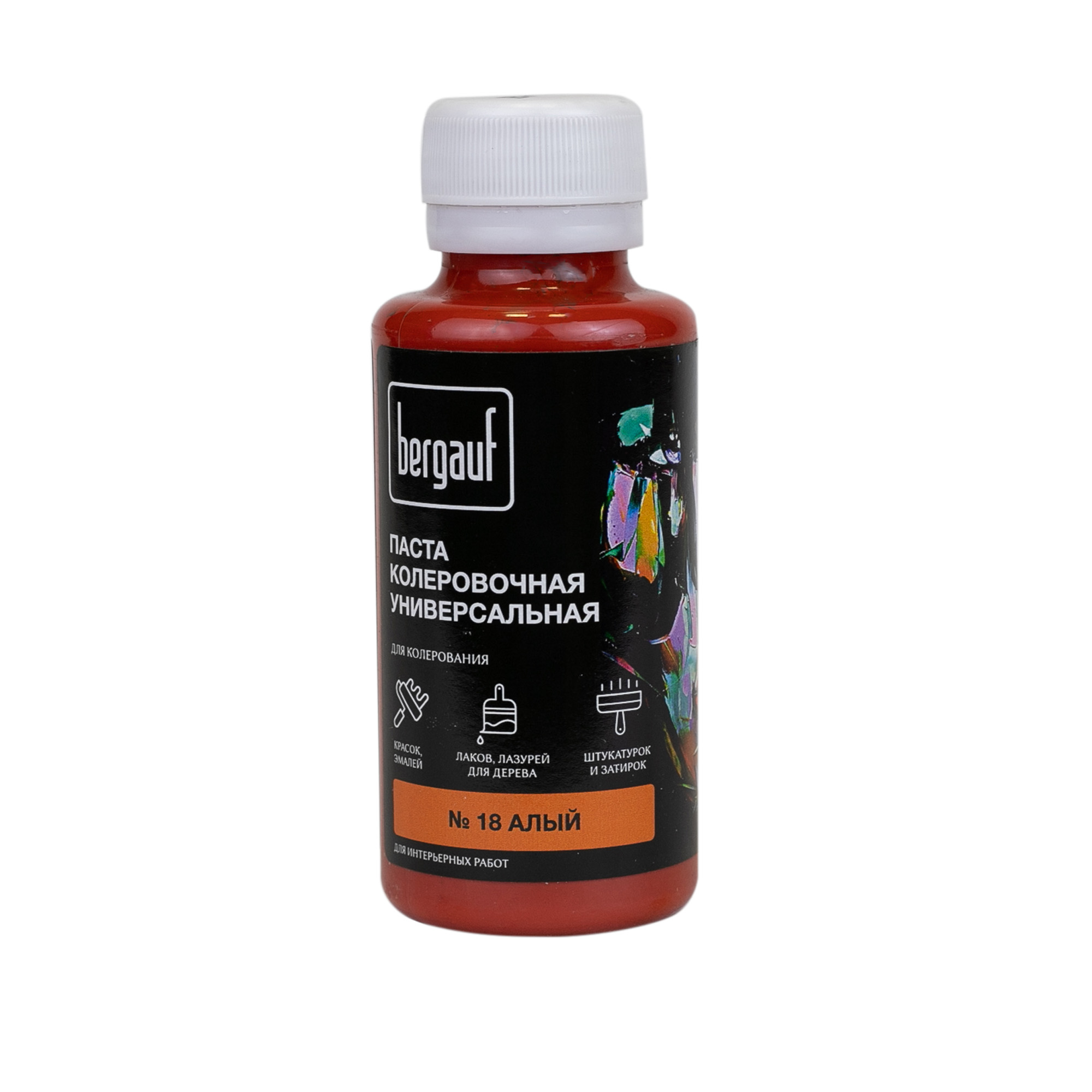 Колер-паста BERGAUF алая 0,1 л универсальная для эмалей, масляных и водных красок.