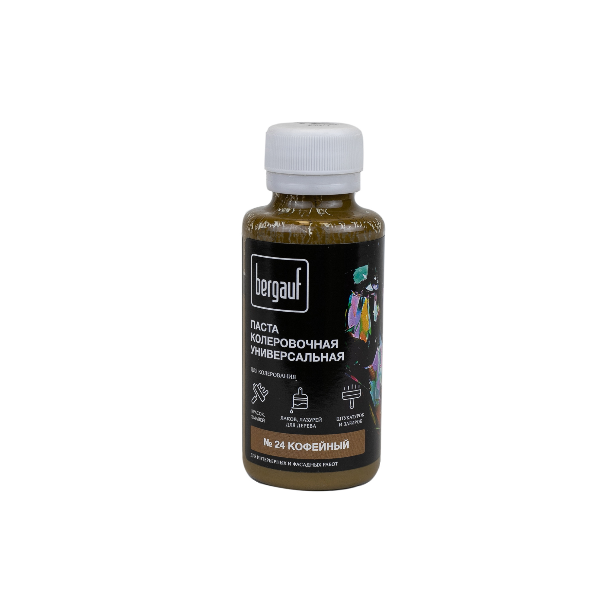 Колер-паста BERGAUF кофейная 0,1 л универсальная для эмалей, масляных и водных красок.