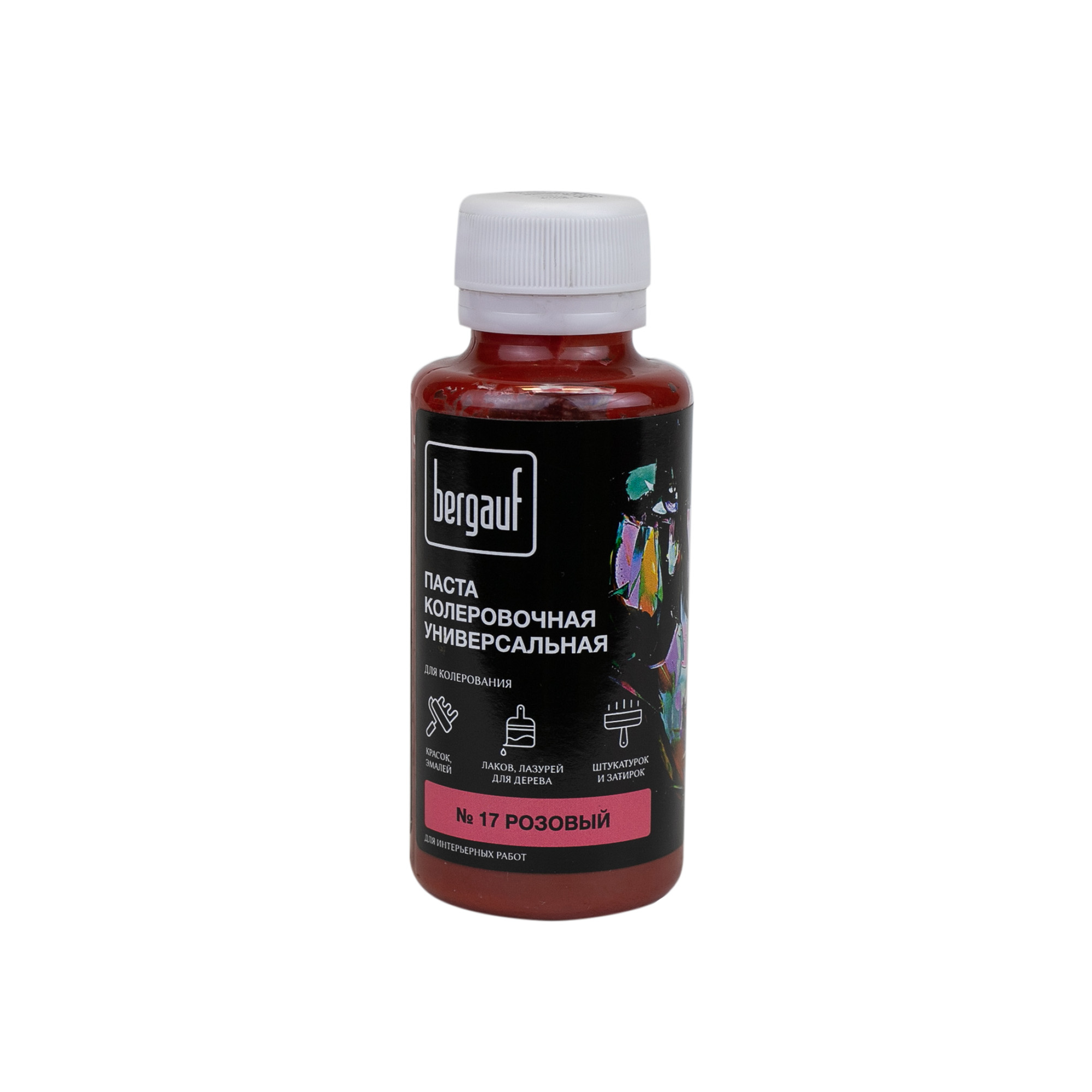 Колер-паста BERGAUF розовая 0,1 л универсальная для эмалей, масляных и водных красок.