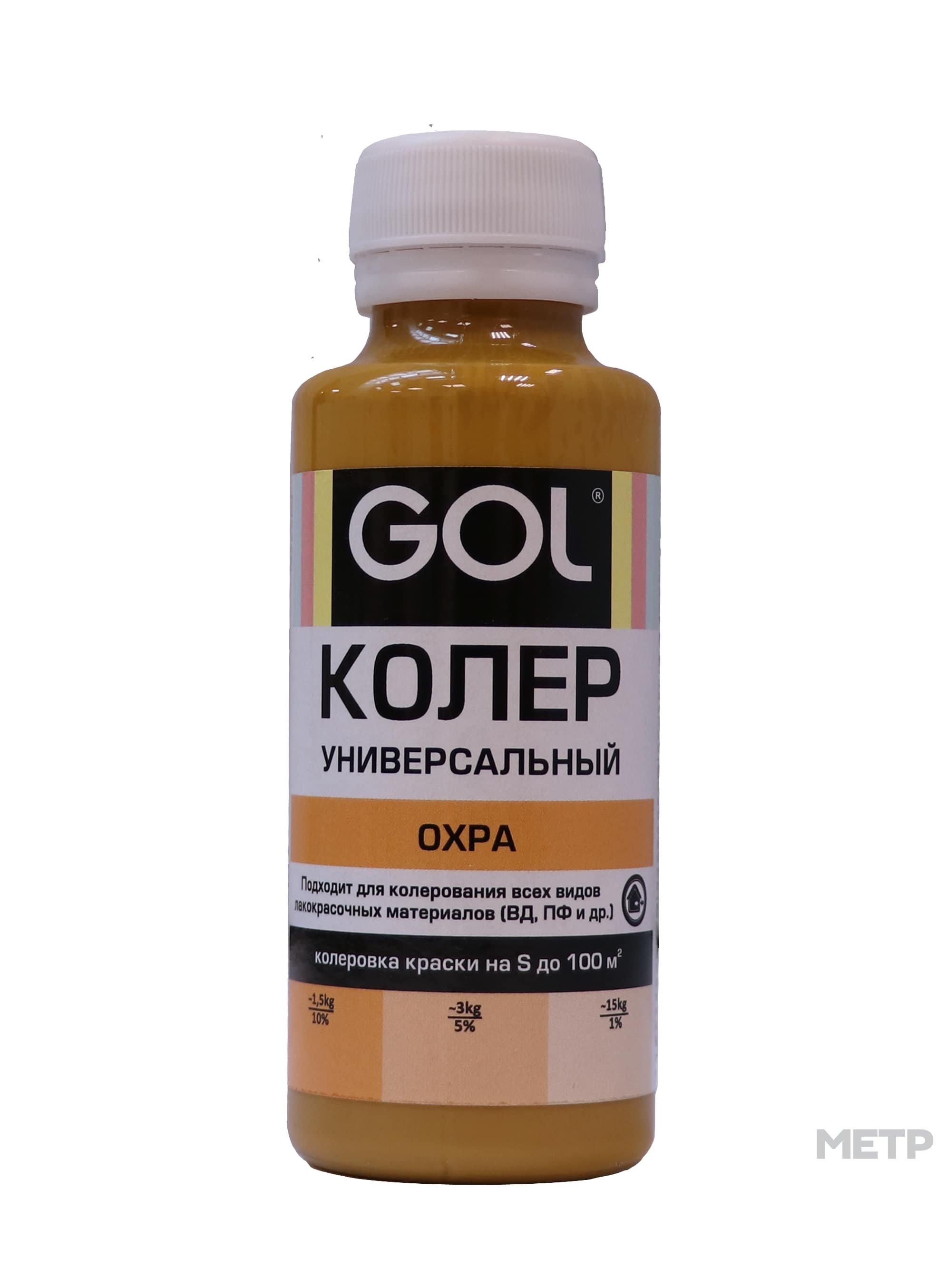 Паста колеровочная универсальная GOL охра 0,1 л применяется для колерования эмалей, лаков, красок, затирок, штукатурок и лазурей для дерева на масляной, водной, и др. органических основах. Перед применением флакон с пастой необходимо встряхнуть, после чего необходимое количество пасты ввести в небольшую часть краски и тщательно перемешать. Полученную, в результате этого, смесь добавить, перемешивая, в остальную часть краски, перемешать. Рекомендуется вводить в краску не более 5%