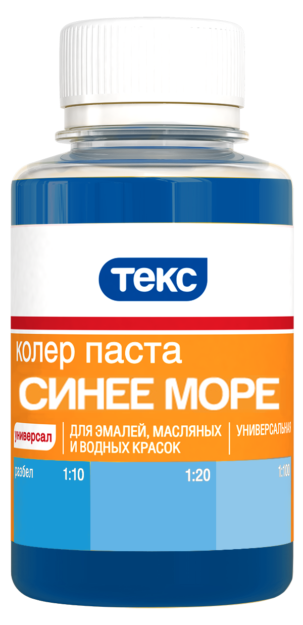 Колер-паста Универсал синее море 0,1 л предназначена для тонирования эмалей, масляных и водоразбавляемых красок, шпатлевок, побелочных составов. Может использоваться для колеровки материалов, используемых снаружи помещений (только тона №8, 9, 10, 13, 22, в состав которых входят светостойкие неорганические пигменты).
