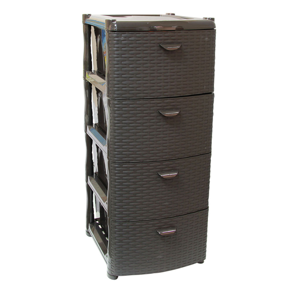 Комод пластик Коричневый ротанг 4 секции – вместительный и практичный пластиковый комод отлично подойдёт для детской комнаты или рабочего кабинета. Благодаря небольшому весу всегда можно переместить в удобное место. Имеет классический коричневый цвет и 4 отделения для хранения личных вещей.