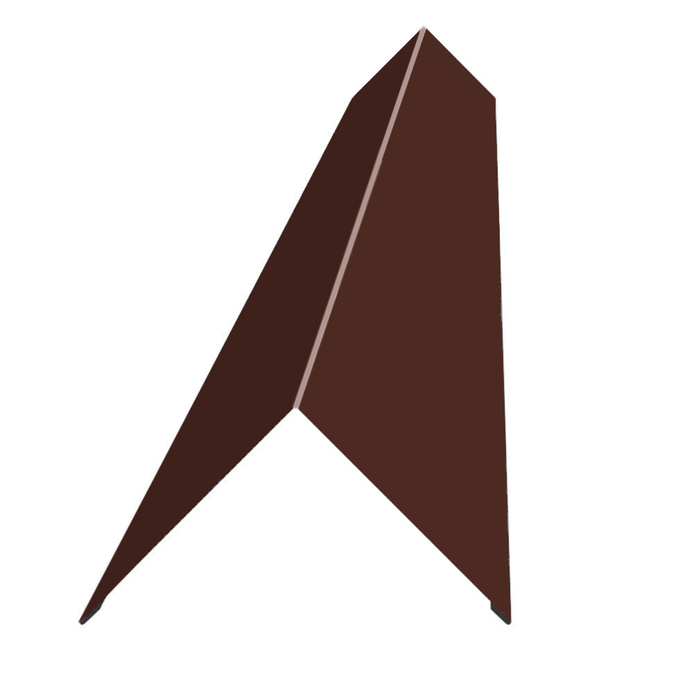 Конек плоский МеталлПрофиль 0,150х,0,150 х 2 метра шоколадно-коричневый 8017 - доборный элемент, предназначенный для защиты стыка пересечения двух наклонных скатов. Конек изготавливается из оцинкованного металла тощиной 0,45мм, края конька завальцованы.