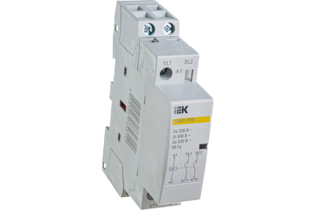 Контактор модульный IEK КМ20-20М 20А 230В 2НО предназначен для применения в сетях переменного тока напряжением до 400 В частоты 50 Гц и служат для коммутации слабоиндуктивных нагрузок с номинальным током до 63 А. Используется для автоматизации и управления различных технологических процессов, в том числе в системах освещения, кондиционирования, вентиляции и т.д. Совместимость размеров с изделиями модульной серии. Наличие визуальной индикации состояния главных контактов.