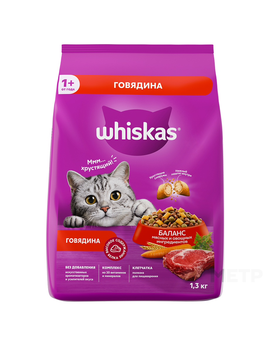 Корм сухой для кошек Whiskas собрал в себе лучший рацион для вашего питомца на весь день. Хрустящие подушечки идеально сочетаются с нежным паштетом внутри. Ваш пушистый друг не останется равнодушным.