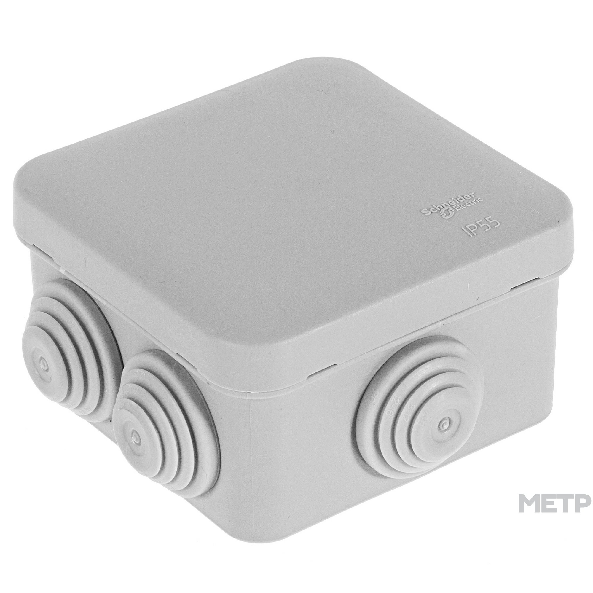 Коробка распределительная накладная Schneider Electric 100х100х50мм IP55 серая предназначена для разветвления проводов и кабелей, также для скрытия и дополнительной защиты мест коммутации. Используется для открытой установки. Имеет защёлкивающуюся крышку, соединенную пластиковой ниткой с корпусом коробки и 6 ступенчатых сальников для ввода кабеля или гофротрубы. Модель отличается высокой степенью безопасности и надежностью, рассчитана на длительную эксплуатацию в условиях существенных нагрузок, периодических перепадов напряжения в сети. Степень защиты - IP55, огнестойкость - 750°С, материал- полипропилен.