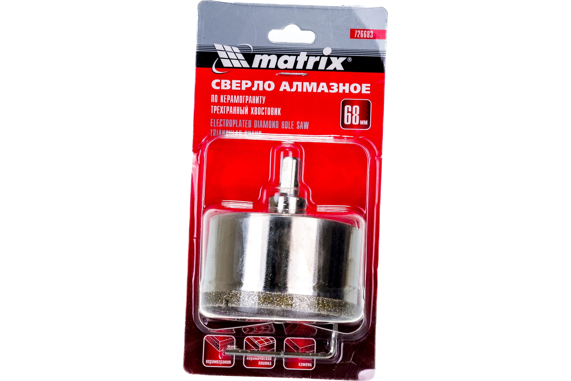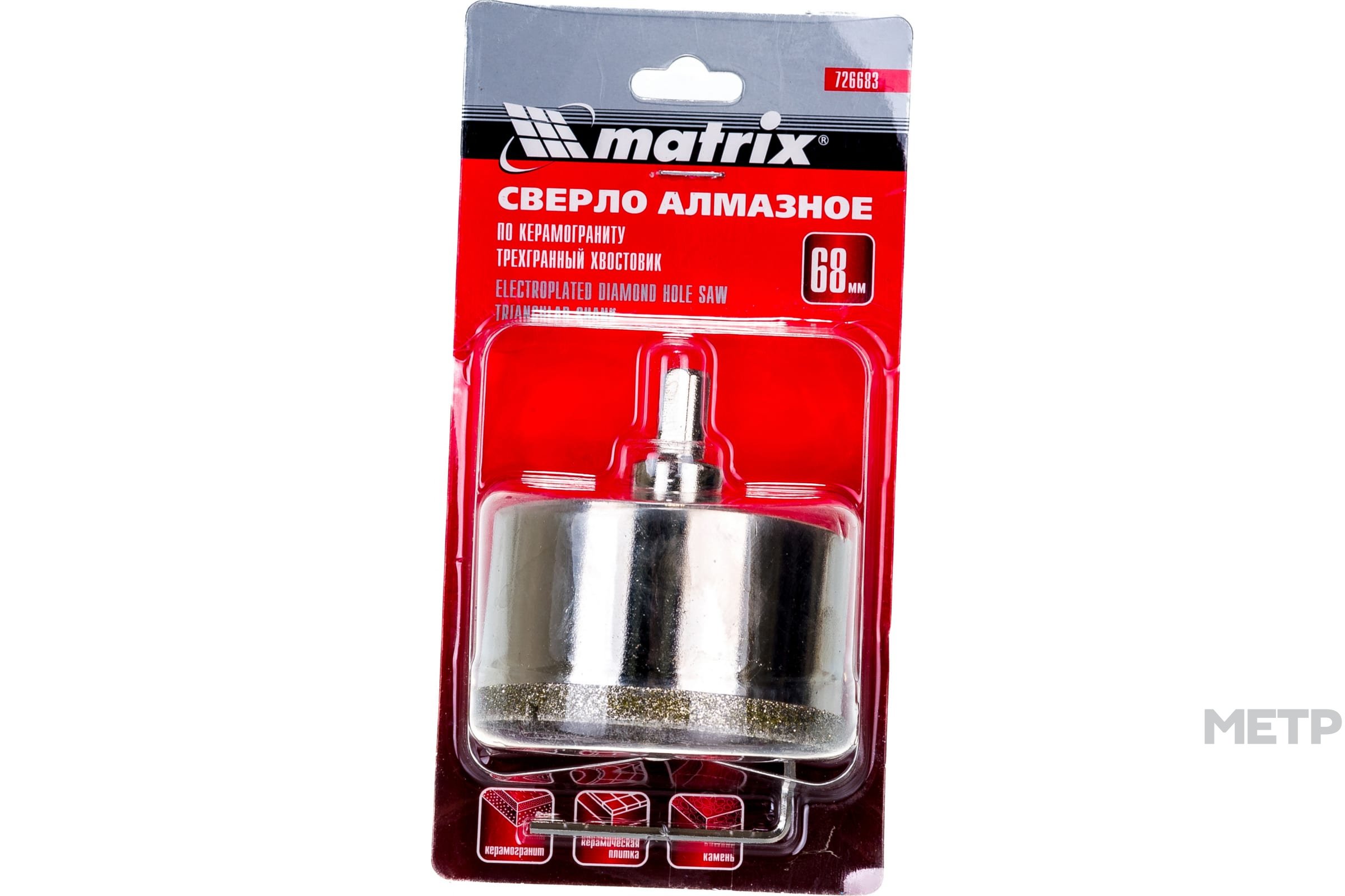 Коронка Matrix 68 мм по керамике – инструмент, который используется для сверления отверстий для подрозетников в керамической плитке. Если в ванной комнате планируется установка выключателей и розеток, данная насадка обязательно должна быть в арсенале мастера. Коронка обладает большим сроком службы.
