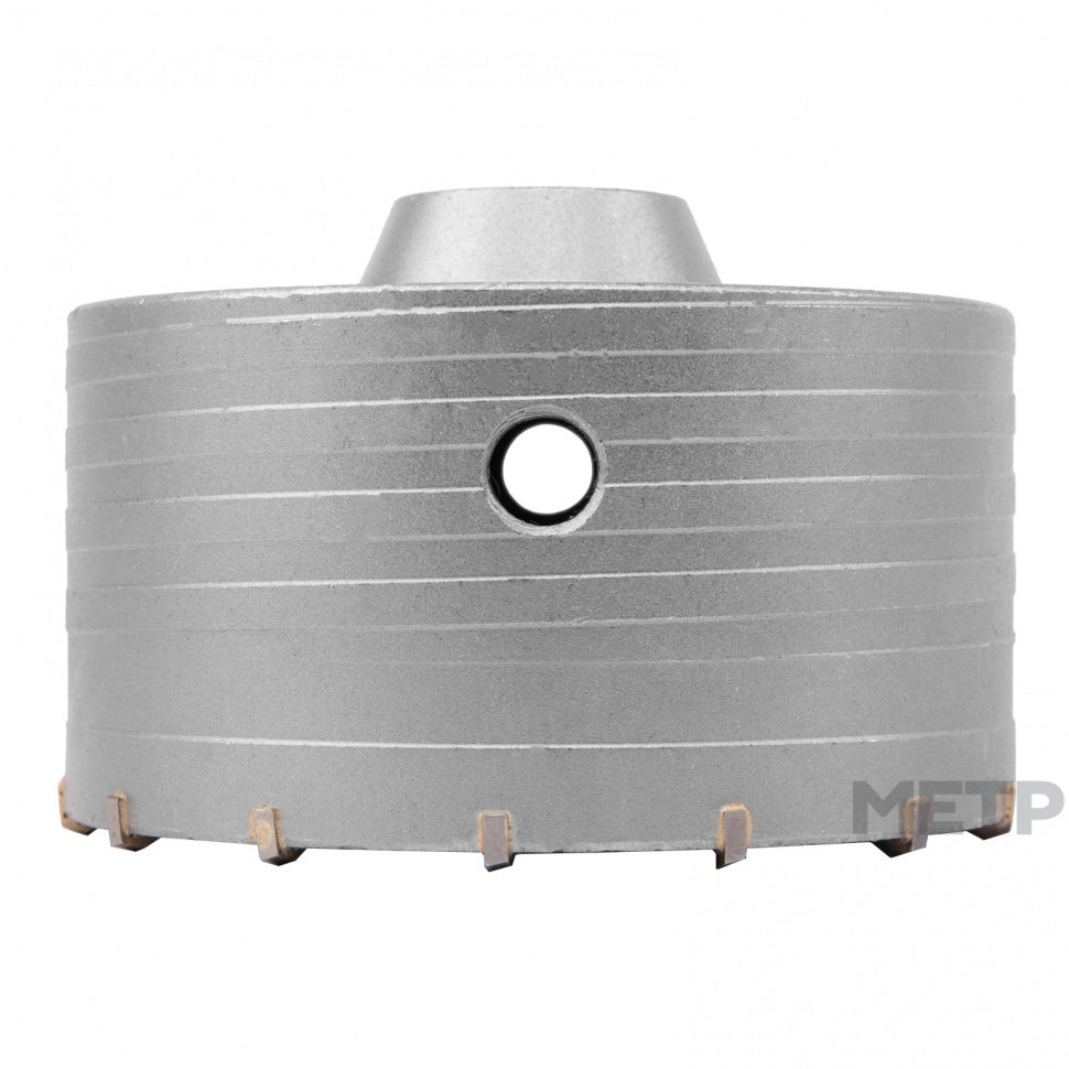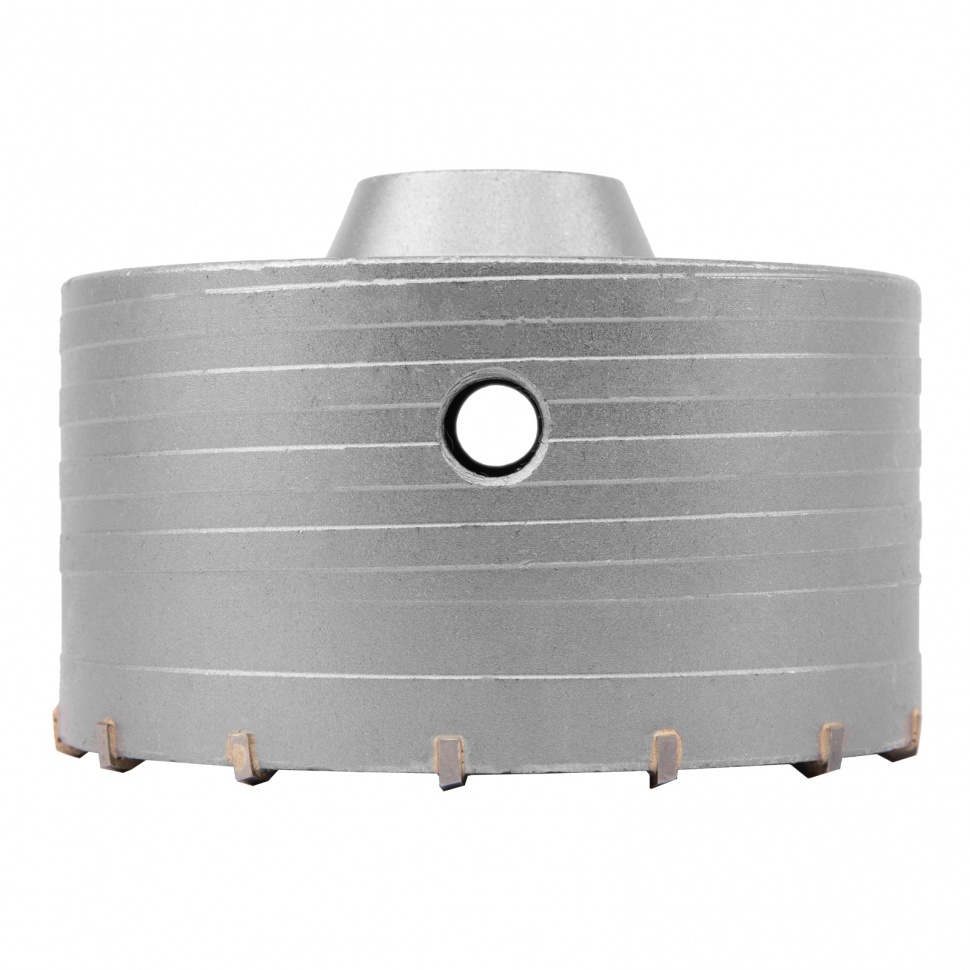 Коронка буровая 110мм по бетону под державку рассчитана на сверление отверстий в бетоне, кирпиче, граните, природном и искусственном камне. Она устанавливается в качестве оснастки на ударные дрели или перфораторы, оснащенные хвостовиками SDS-Plus или SDS-Max. Коронка позволяет получить большие отверстия, поэтому пригодится при проведении бытовых ремонтных работ для монтажа розеток, выключателей и прокладки труб.