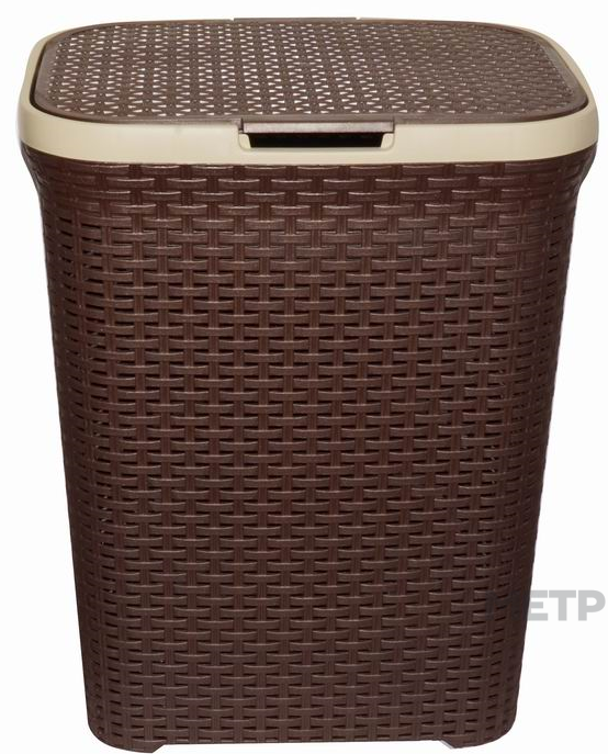 Корзина для белья Ротанг 45х35х56 см. Прямоугольная коричневая корзина для белья Ротанг с оригинальным плетеным узором имеет плотно закрывающуюся крышку и две удобные ручки. Корзина изготовлена из высокопрочного и легкого пластика. Подойдет как для хранения грязных вещей в ванной комнате, так и для: игрушек, книг, сезонных вещей. Через небольшие отверстия в стенках корзины к вещам поступает воздух. Проста в уходе, достаточно просто протереть влажной тряпкой.