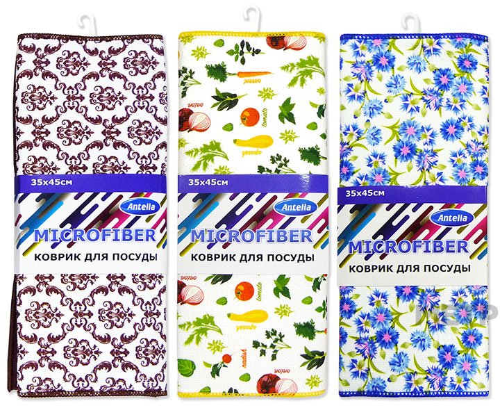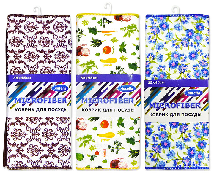Коврик для сушки посуды (35х45 см), материал – микрофибра, многоцветный. В основе изделия ультратонкие волокна синтетического происхождения. Использование таких ковриков на кухне сделает процесс мытья посуды проще. Оптимальный вариант для крупных домовладений и заведений общепита.
