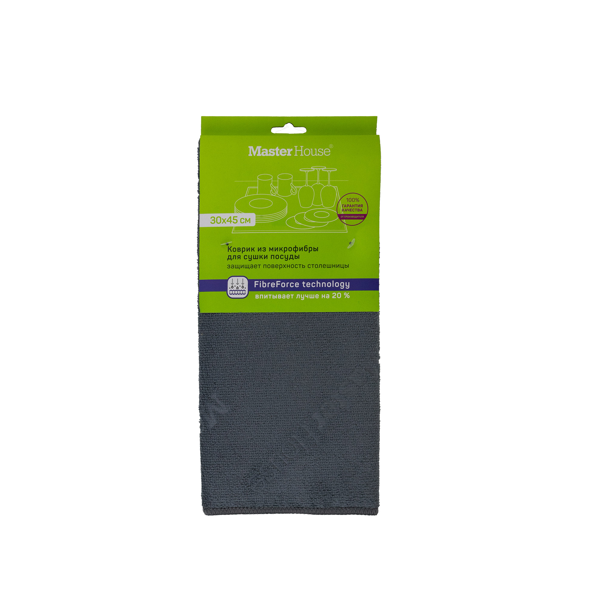 Коврик для сушки посуды из микрофибры. Не скользит, легко отжимается, отлично впитывает воду, защищает столешницу. Материалы: полиэстер 100%, поролон. Упаковка : картон, европодвес