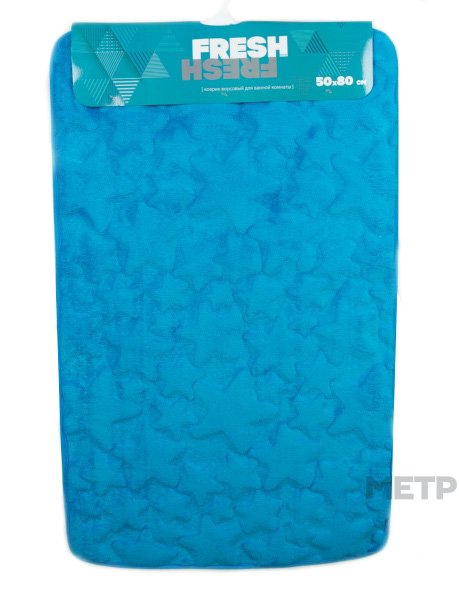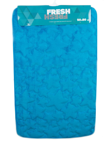Коврик в/к 50/80 Fresh Звезды голуб. FX1902 blue, КИТАЙ, Коврик ворсовый в ванную комнату. Материал поверхности: микрофибра. Внутренний слой из вспененного пвх, противоскользящее основание из ПВХ. Хорошо впитывает влагу, не линяет, не скатывается. Допускается деликатная стирка.
