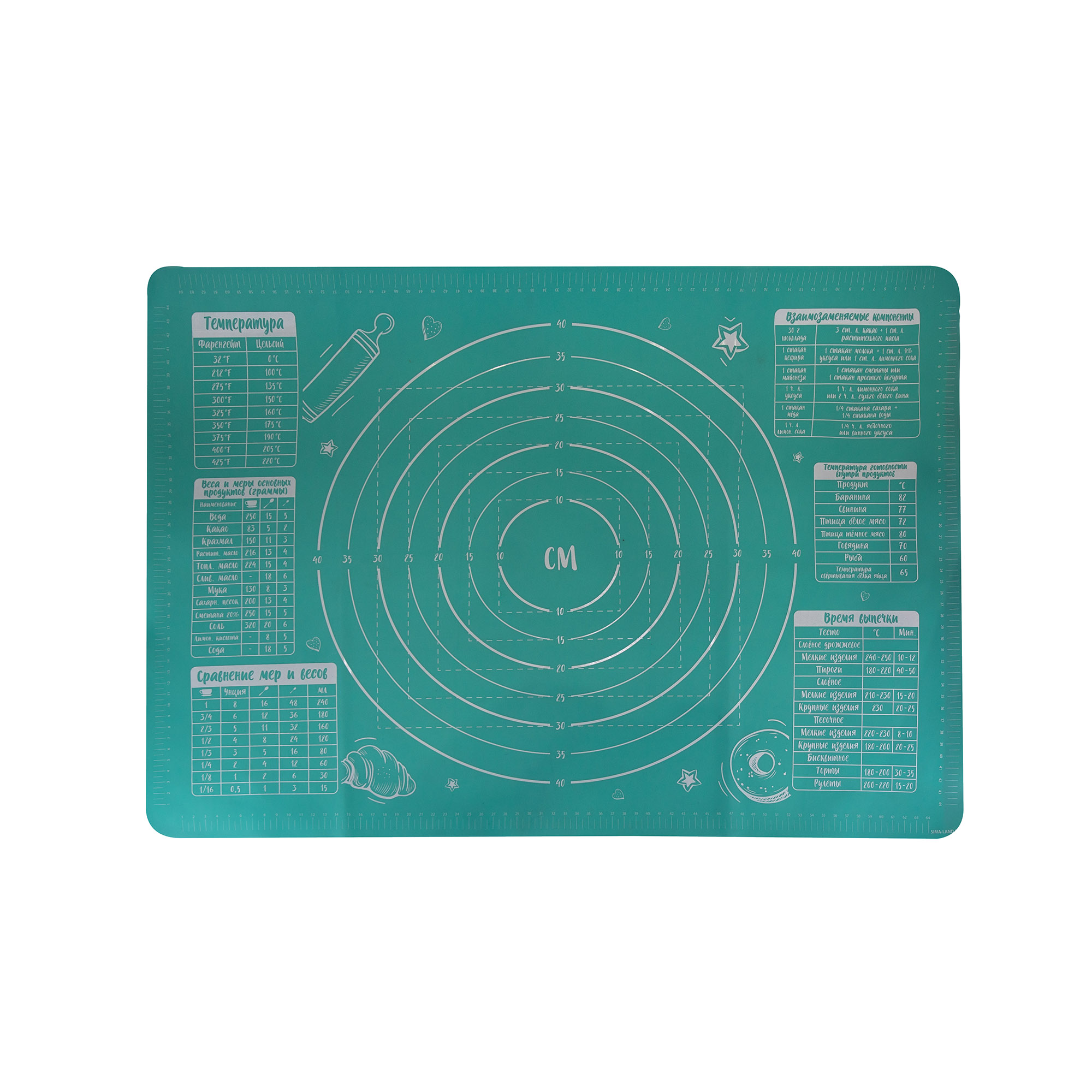 Коврик кулинарный из силикона, 70х50см, с удобной разметкой предназначен для выпекания хлебных и кондитерских изделий. На универсальном кухонном аксессуаре можно раскатывать и формировать продукты, предназначенные для запекания. Коврик не впитывает запахи, поэтому на нем можно готовить также мясо или рыбу.
