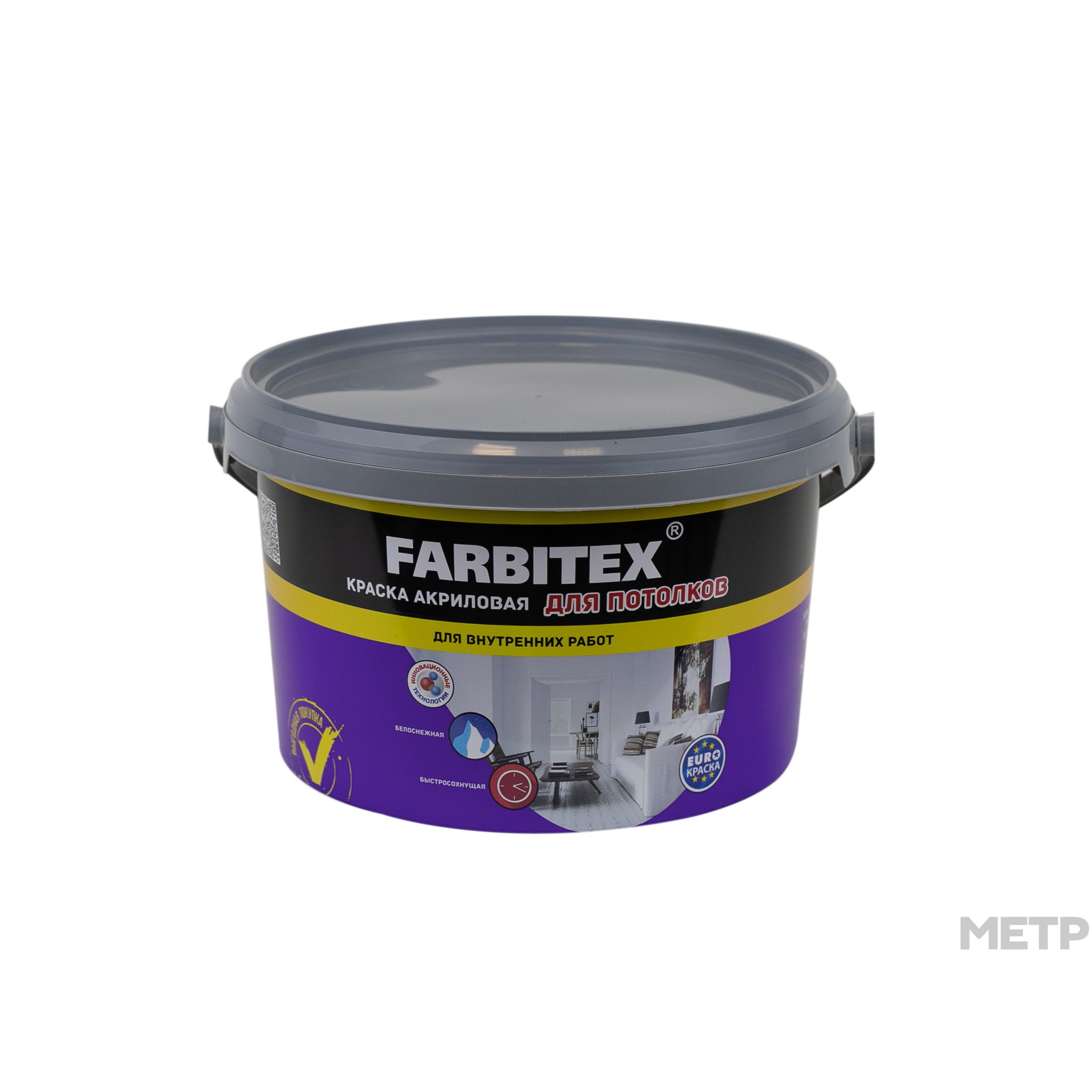 Высококачественная водно-дисперсионная краска акриловая для потолков FARBITEX 3 кг предназначена для окраски кирпичных, бетонных, цементных, гипсокартонных, оштукатуренных и зашпатлеванных поверхностей, ДСП и ДВП внутри сухих помещений. Краска обладает отличной укрывистостью, адгезией. Образует матовое белоснежное покрытие. Хорошо колеруется ручными колорантами. Удобна при окрашивании потолков (не разбрызгивается). Образует матовое белоснежное покрытие. Краска обладает хорошей укрывистостью, адгезией и декоративными свойствами. Быстро высыхает и практически не имеет запаха.