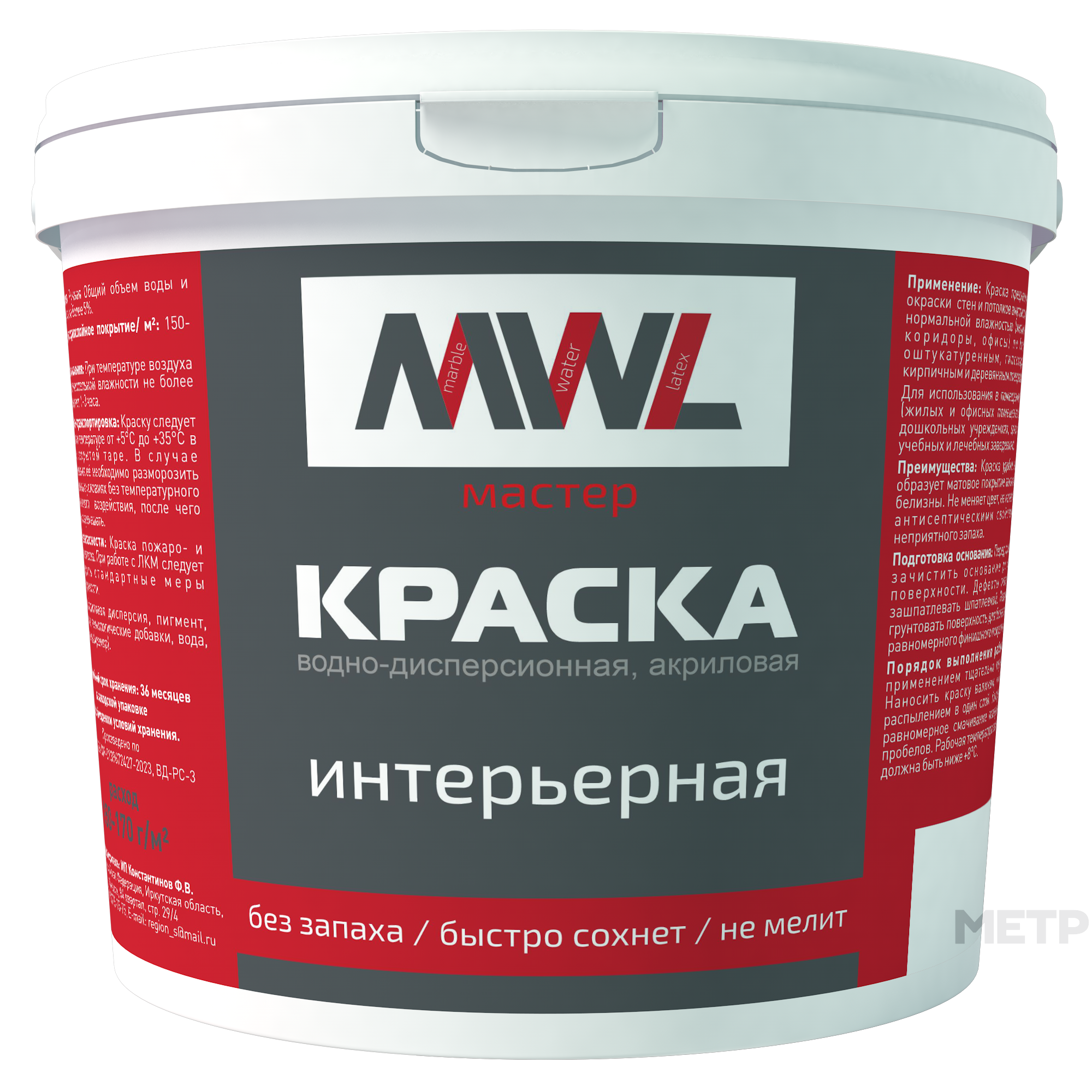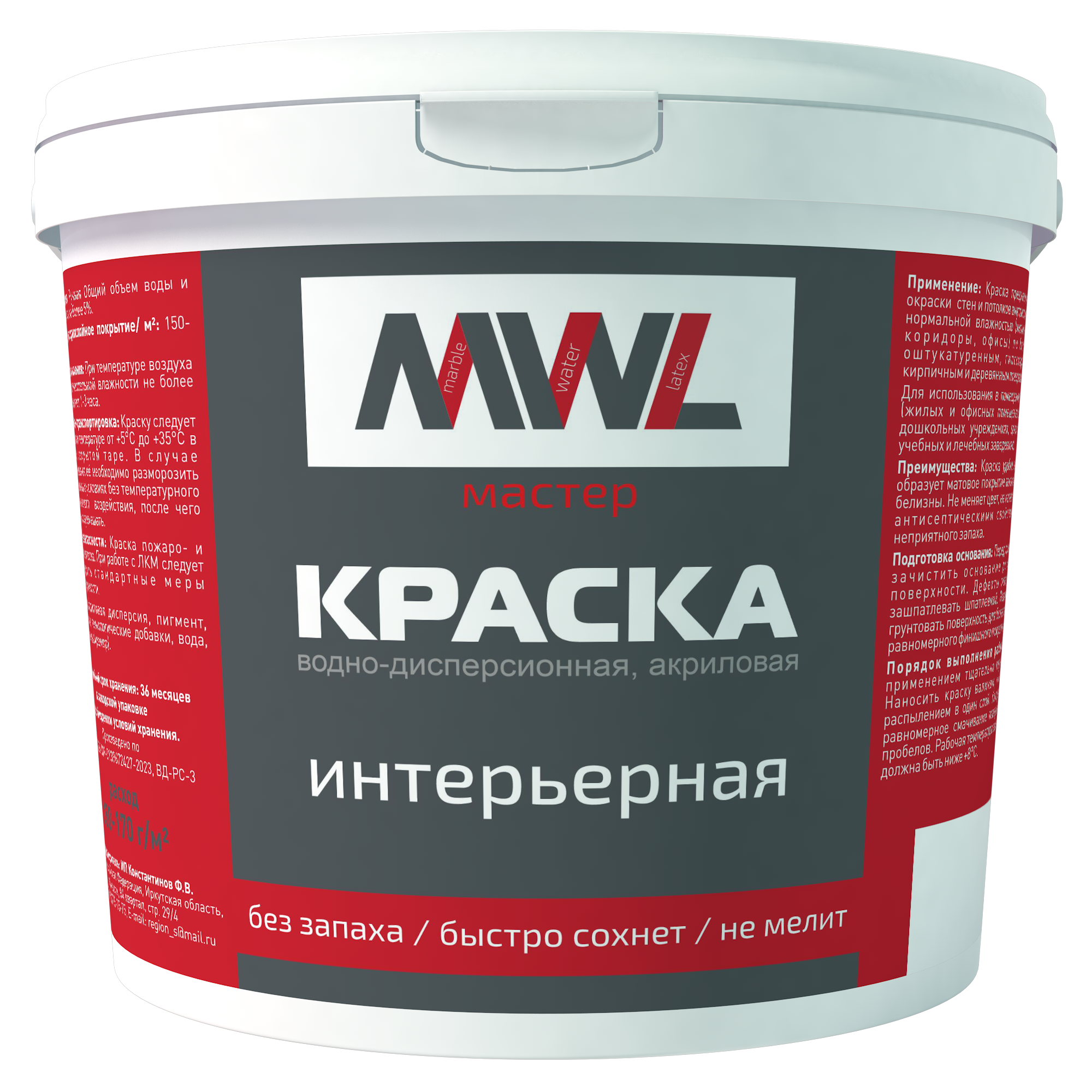 Краска водно-дисперсионная акриловая МАСТЕР интерьерная 14 кг применяется для окраски стен и потолков внутри помещений с нормальной влажностью, различных типов поверхности (бетонные, оштукатуренные, гипсокартонные, кирпичные и деревянные поверхности). Используется в помещениях типа А-В (жилых и офисных помещениях, детских дошкольных учреждениях, домах ребенка, учебных и лечебных заведениях).