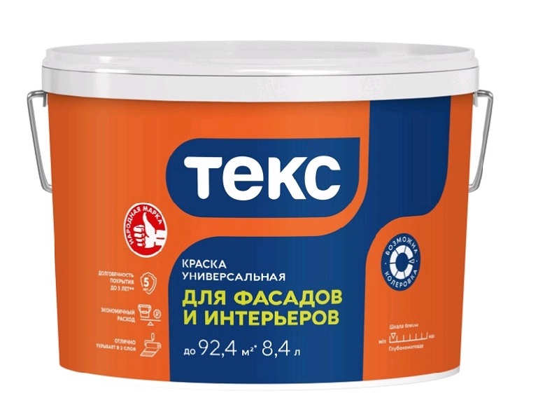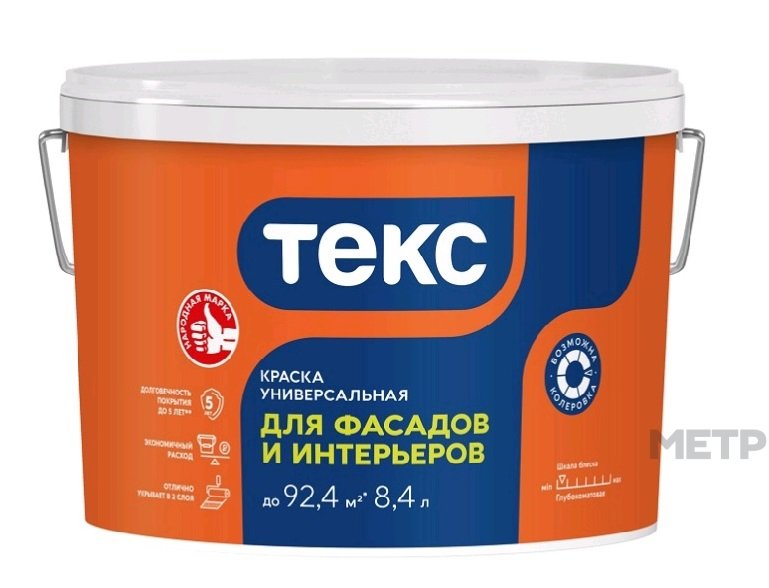 Водно-дисперсионная краска Универсал 13 кг для фасадов зданий и сооружений, а также для стен и потолков внутри сухих помещений и помещений с повышенной влажностью. • Долговечность покрытия до 5 лет