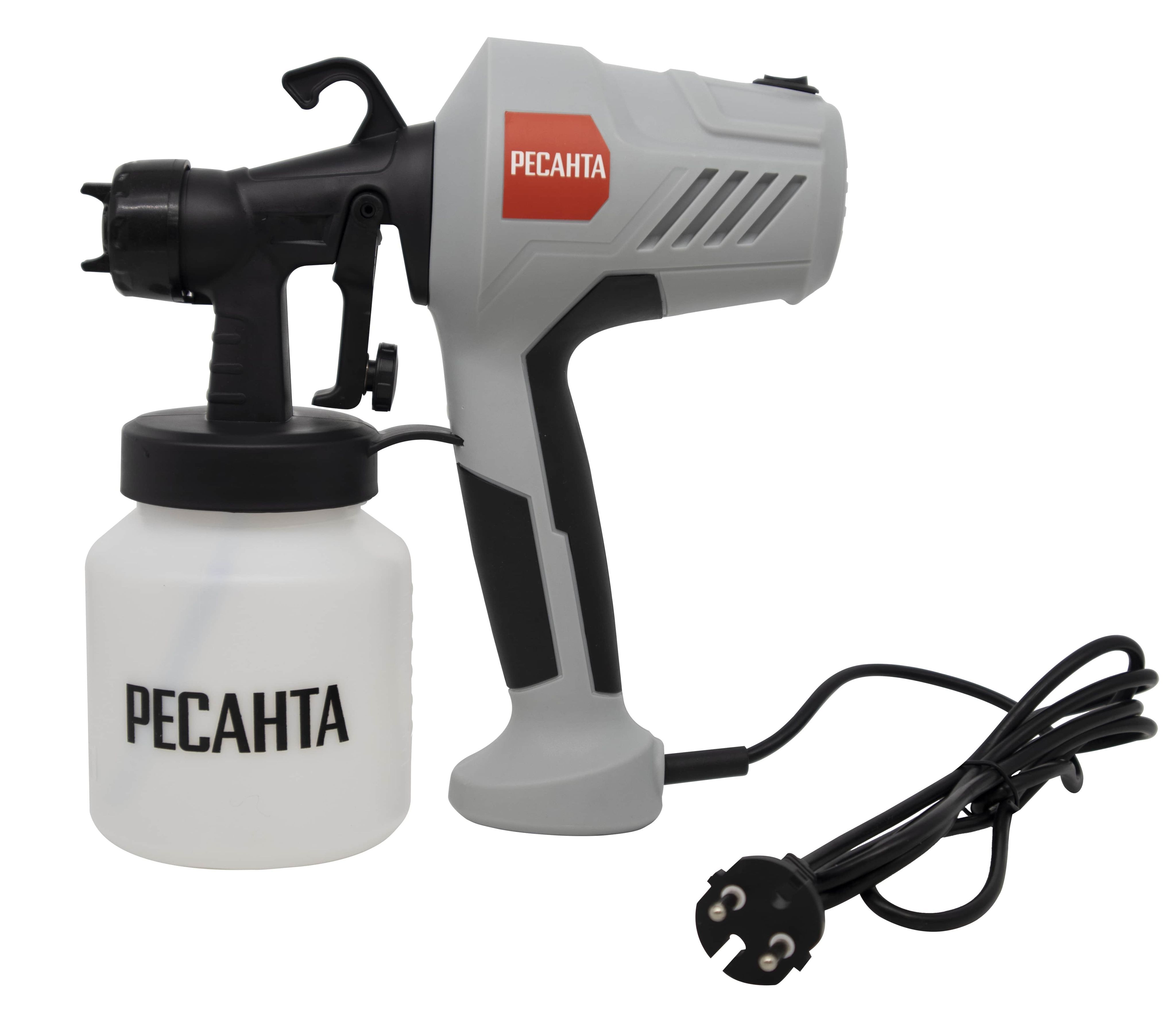 Распылитель краски ЭКП-400 0,4кВт 0,7л/м 1,7мм 0,8л воздушный РЕСАНТА предназначен для нанесения красок, лаков и других растворимых материалов соответствующей вязкости на различные поверхности.