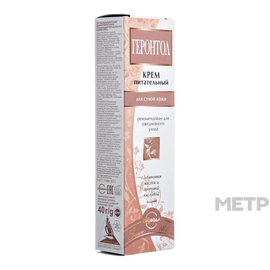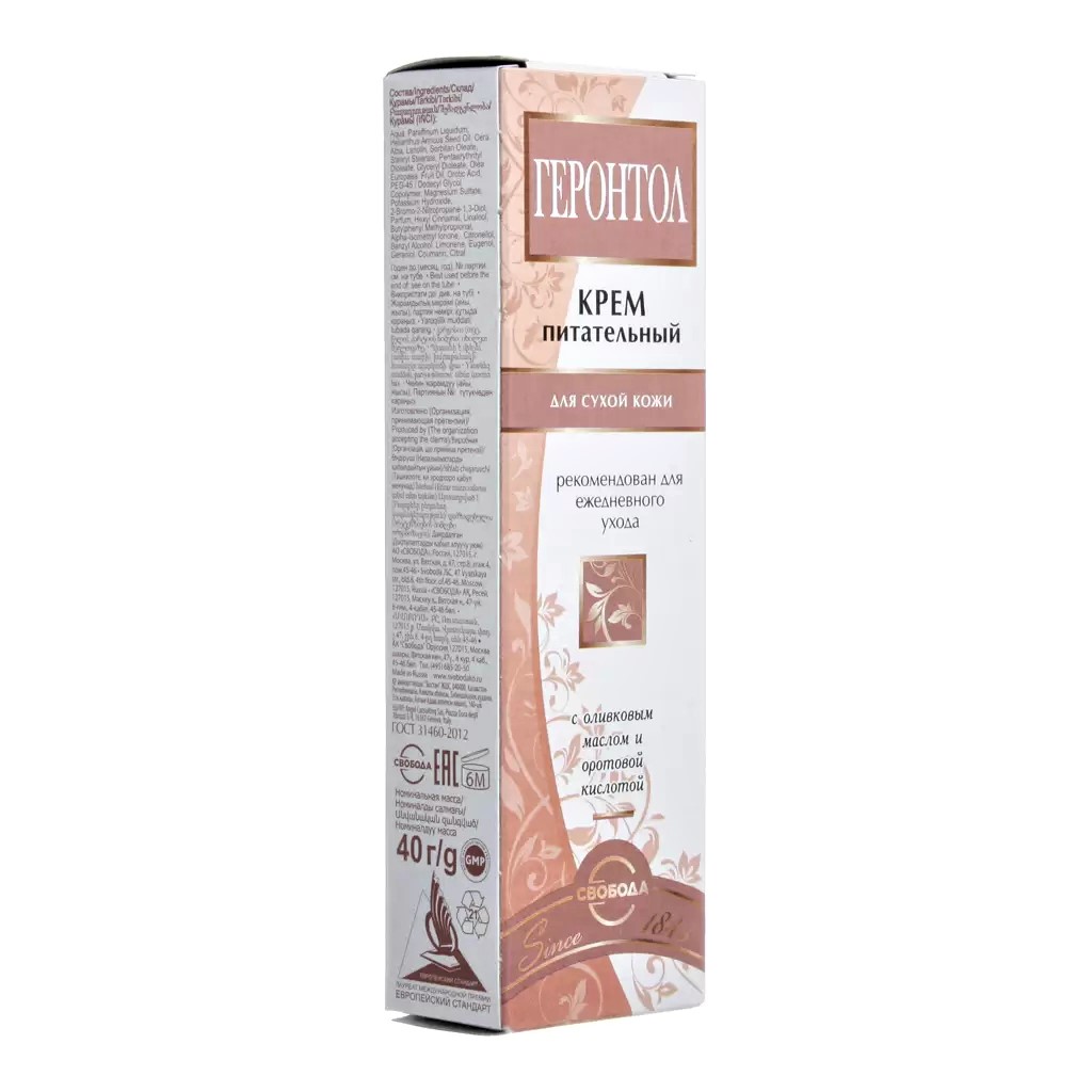 Крем для лица Свобода Геронтол 40 г разработан для устранения проблем сухой и обезвоженной кожи. Оливковое масло в сочетании с оротовой кислотой активно противодействует процессам старения, восстанавливает синтез белка и выработку клетками кожи собственной гиалуроновой кислоты. Активные ингредиенты крема глубоко увлажняют кожу, восстанавливают ее защитный барьер, эффективно борются с шелушением, раздражением и увяданием.