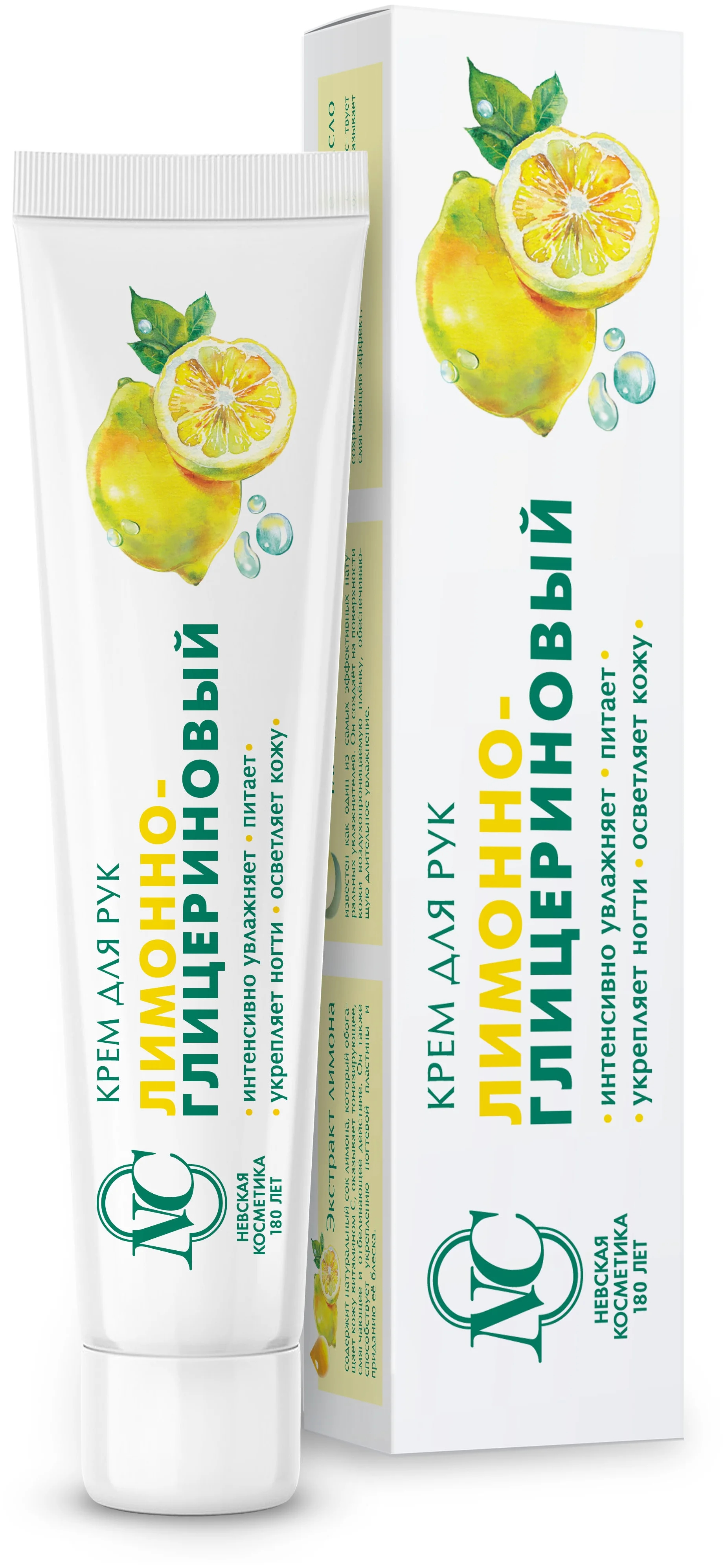Крем для рук Невская косметика Лимонно-глицериновый 50 мл имеет легкую текстуру, быстро впитывается, не оставляя ощущение жирной пленки, при этом глубоко увлажняет кожу рук, осветляет ее, оказывает антисептическое действие на микротравмы, укрепляет ногтевую пластину. Глицерин создает на поверхности дышащую микропленку, которая адсорбирует влагу из воздуха и обеспечивает увлажнение кожи на протяжении долгого времени, экстракт лимона тонизирует, осветляет и смягчает кожу.