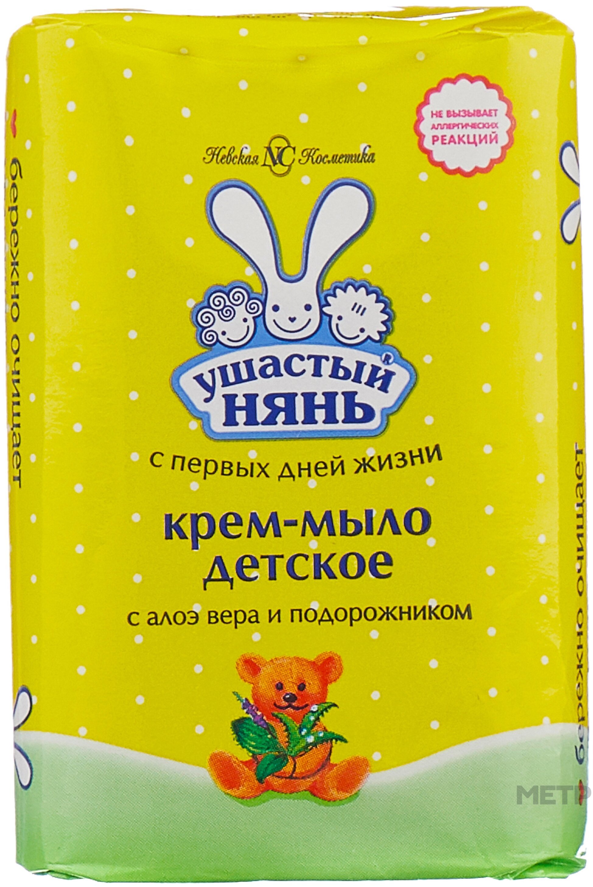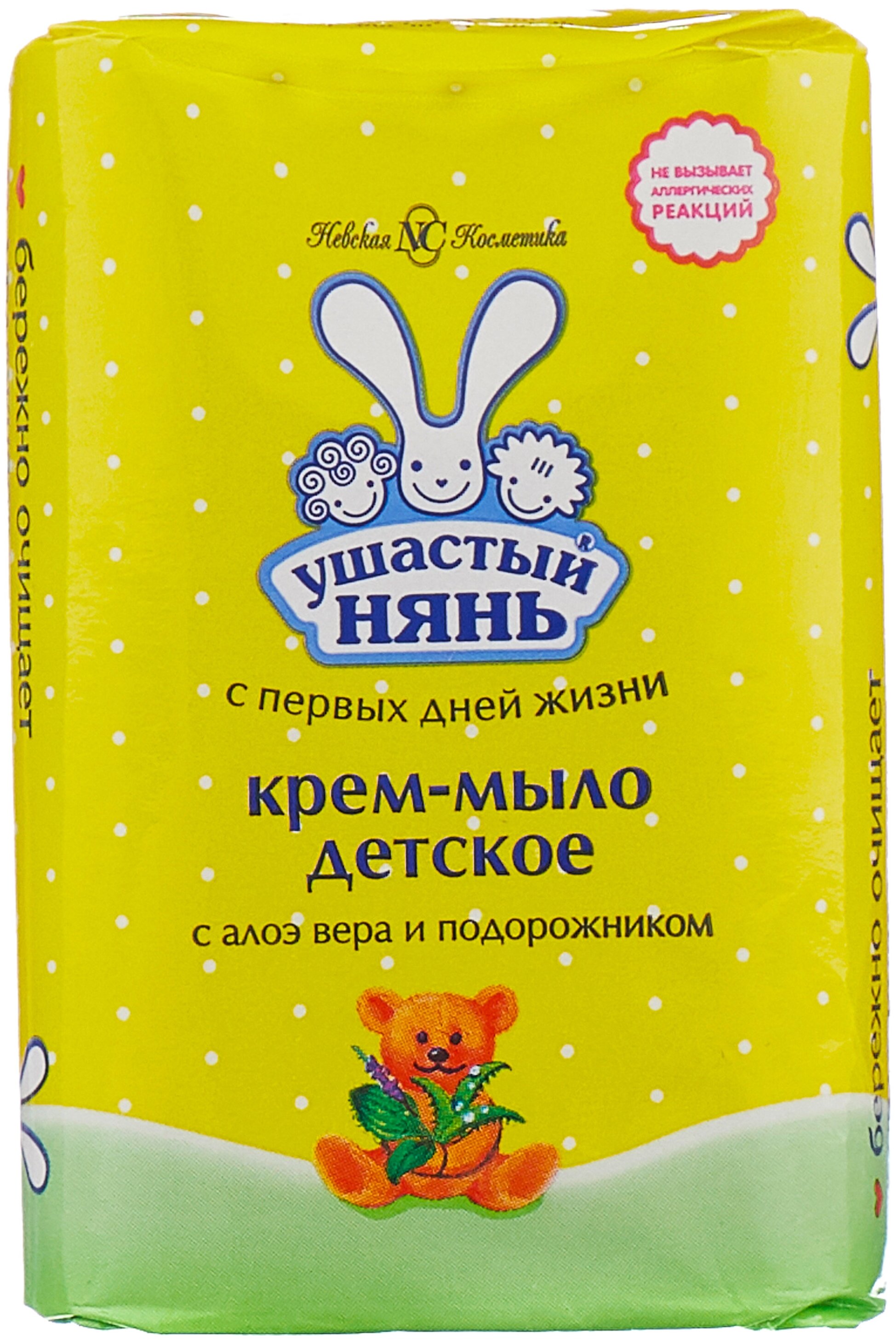 Крем-мыло Ушастый Нянь Алое вера и подорожник 90 г практически не вызывает аллергических реакцией, так как он выполнен из натуральных компонентов. Сочетает в себе функции крема и мыла. Отлично увлажняет кожу, предотвращает появление высыпаний, не имеет в составе вредных веществ. Можно применять с первых дней жизни малыша.