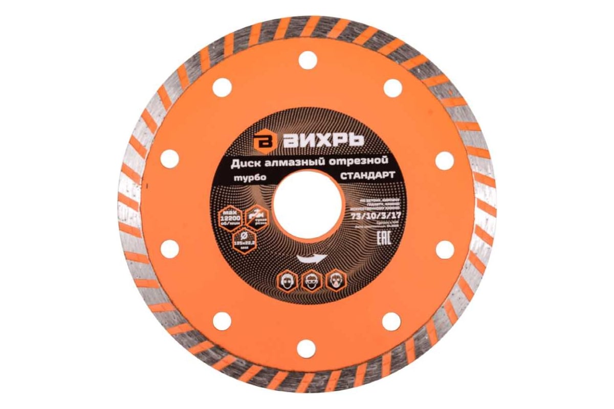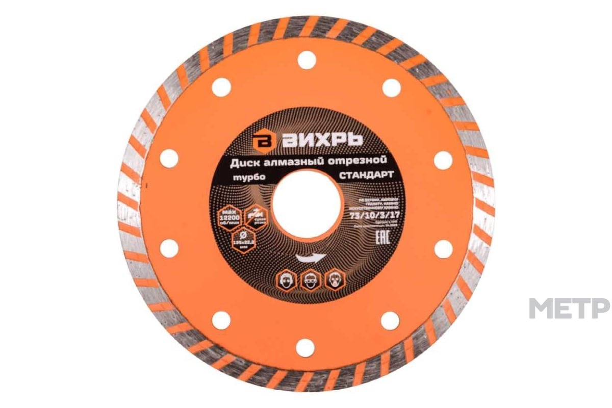 Круг отрезной 125х22,2мм алмазный Турбо СТАНДАРТ комбинированный сухой используется совместно с угловыми шлифмашинами (болгарками) для сухой резки гранитных, бетонных, кирпичных и каменных изделий.