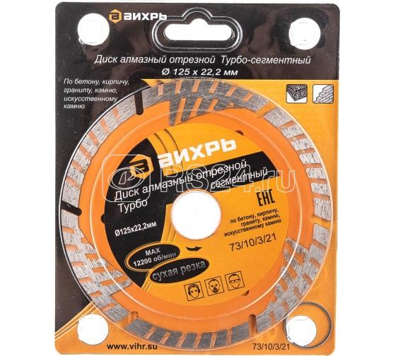 Круг отрезной 125х22,2мм алмазный Турбо сегментный сухой рез используется совместно с угловыми шлифмашинами (болгарками) для сухой резки гранитных, бетонных, кирпичных и каменных изделий.
