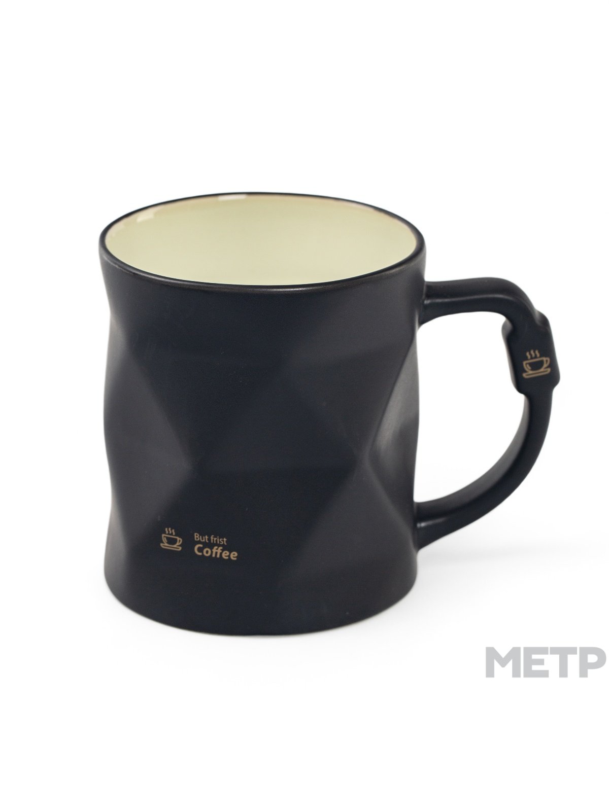 Кружка 390мл BLACK&WHITE Черный изготовлена из фарфора. Большой объем и удобная ручка позволяют вам долго наслаждаться вашим любимым напитком. Фарфор, из которой изготовлена чашка, не дает чаю или кофе быстро остыть. Кружка не подходит для посудомоечной машины.