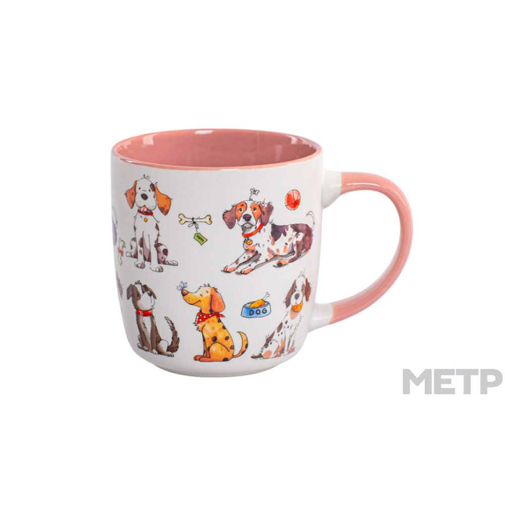 Кружка 380мл DOGS изготовлена из фарфора. Большой объем и удобная ручка позволяют вам долго наслаждаться вашим любимым напитком. Фарфор, из которой изготовлена чашка, не дает чаю или кофе быстро остыть. Кружка не подходит для посудомоечной машины.