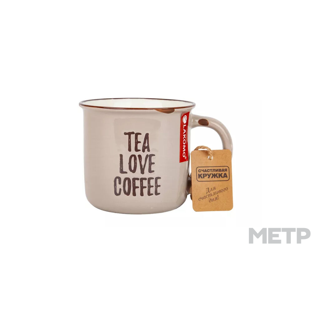 Кружка 370мл Tea Love Coffee Бежевый фарфоровая. Большой объем и удобная ручка позволяют вам долго наслаждаться вашим любимым напитком. Фарфор, из которой изготовлена чашка, не дает чаю или кофе быстро остыть.