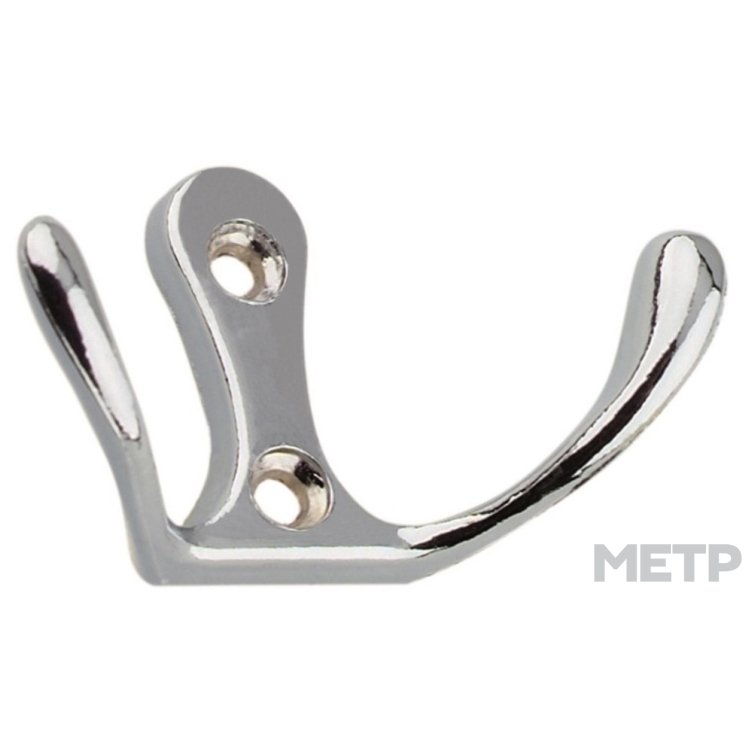 Крючок двойной Trodos Хром из стали – прочный вариант для навешивания вещей в коридоре или шкафу. Компактен, надежное крепление обеспечено саморезами.