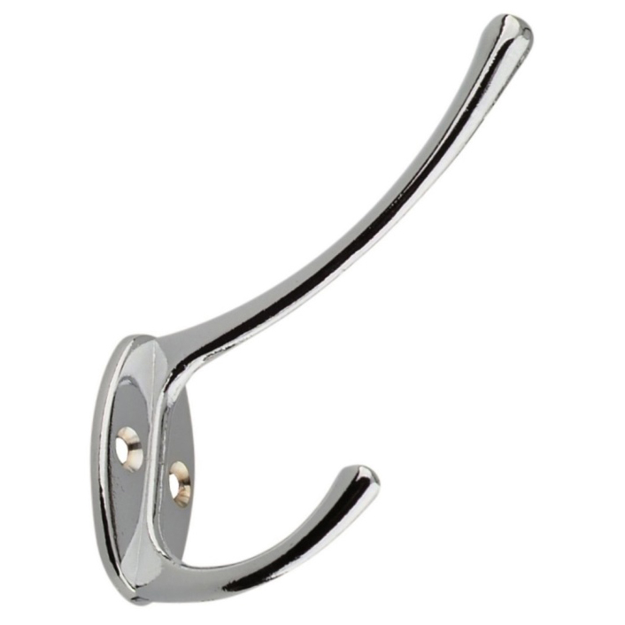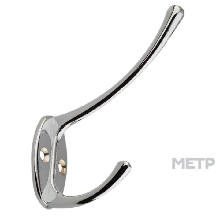 Крючок двойной Trodos хром – это сразу две вешалки в одном прочном, стальном изделии. Крепление саморезами возможно к стене коридора, ванной комнаты, в гардеробе.